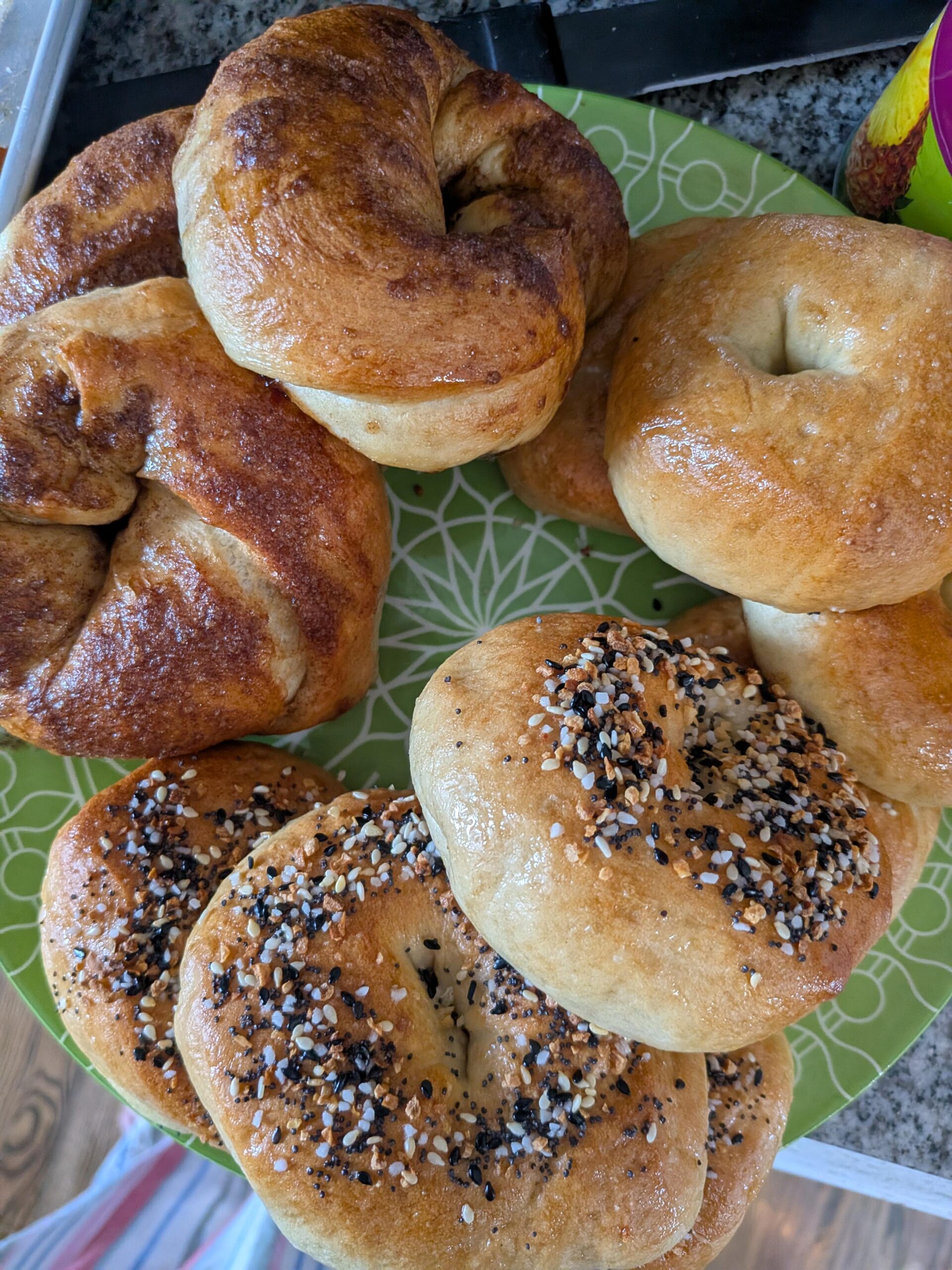I had been terrified of trying my hand at sourdough for years. It seemed needy, it seemed time consuming, it seemed like a temperamental B. But then I figured….I have kids. I can probably do this. Lol. My friend gave me a starter and demystified things and my sourdough journey began. I left it in the fridge for 2 months. 🤦 Ok. let's go. dumped the hooch, attempted bread. it was rough, it was ugly, it didn't really rise but it was good. after a few more weeks of bread I started to get adventurous and start on focaccia, cookies, and bagels. I can't go back now. Every 3 days I need more bagels. I'm about to have surgery and I'm so so sad that I won't be able to make them for a few months. I've done plain, everything, and cinnamon crunch. Any suggestions for more varieties?