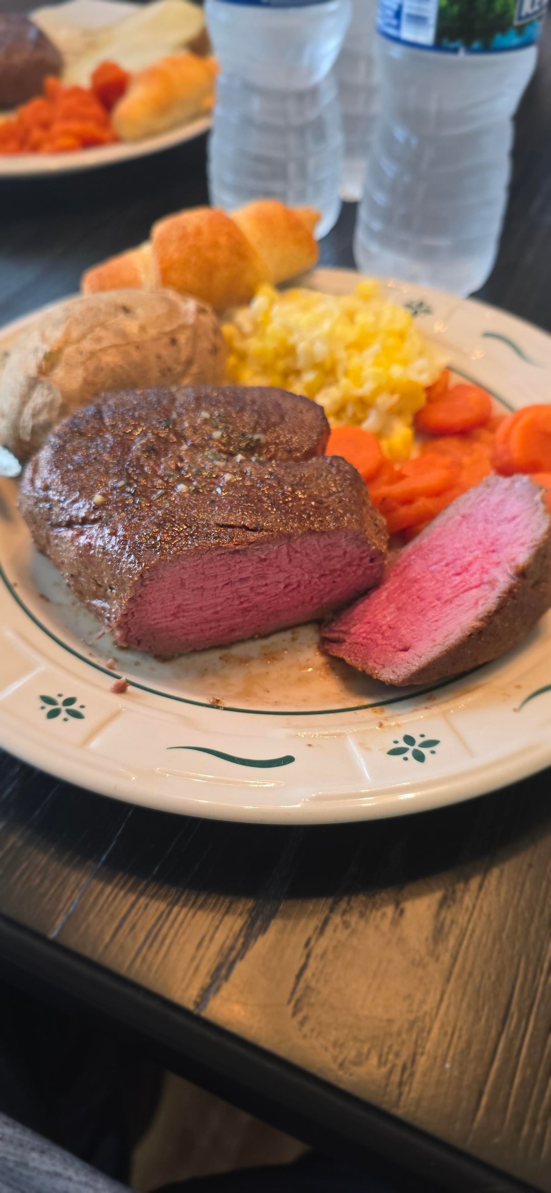 Filet Mignon, 132⁰, 2 hrs, then seared on the Blackstone 45 seconds each side.