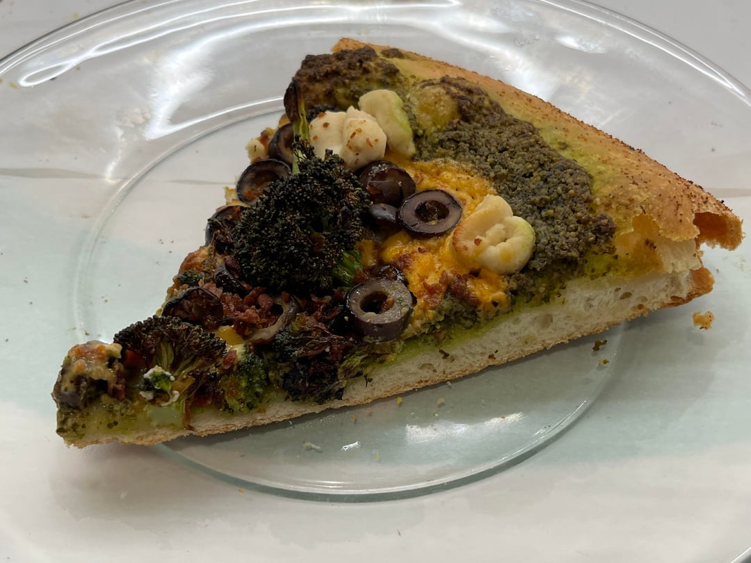 Fresh broccoli on pizza is so good. Yum!!