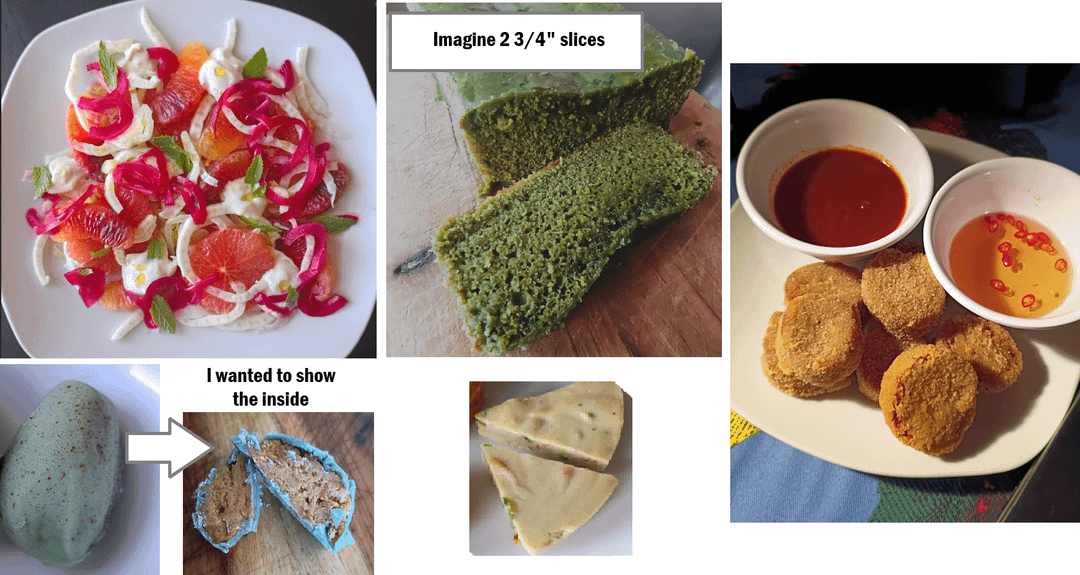 A fancy breakfast salad from Myglobalpantry's Instagram paired with peanut butter eggs! I saw lots of recipes for homemade PB eggs but I used 1/4 cup PB2 1/8 cup applesauce and 1 Tablespoon powdered sugar. The shell is white chocolate colored with spirulina and matcha. Lunch was 2 slabs of matcha pound cake, I didn't like the recipe so it's a secret where it's from. It didn't rise great and the center sunk and absorbed the glaze and makes it look wet. Paired with 2 slices of Plantifully Based's pepper jack recipe. Dinner was Isa of The PPK's new nugget recipe!