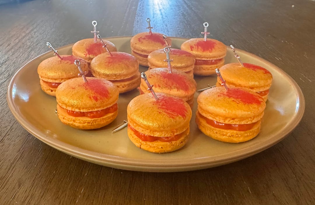 I had to remake these so I totally missed the actual day, but I give you:Ides of March macarons. Blood orange brigadeiro with an orange-cherry-strawberry gelée. by Minimum_Agent_3140 Dining and Cooking