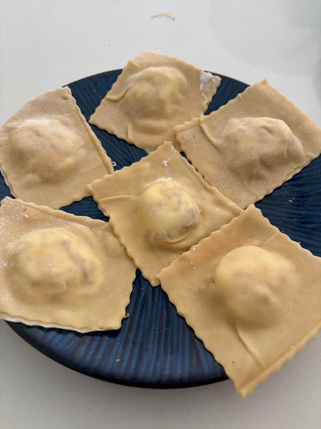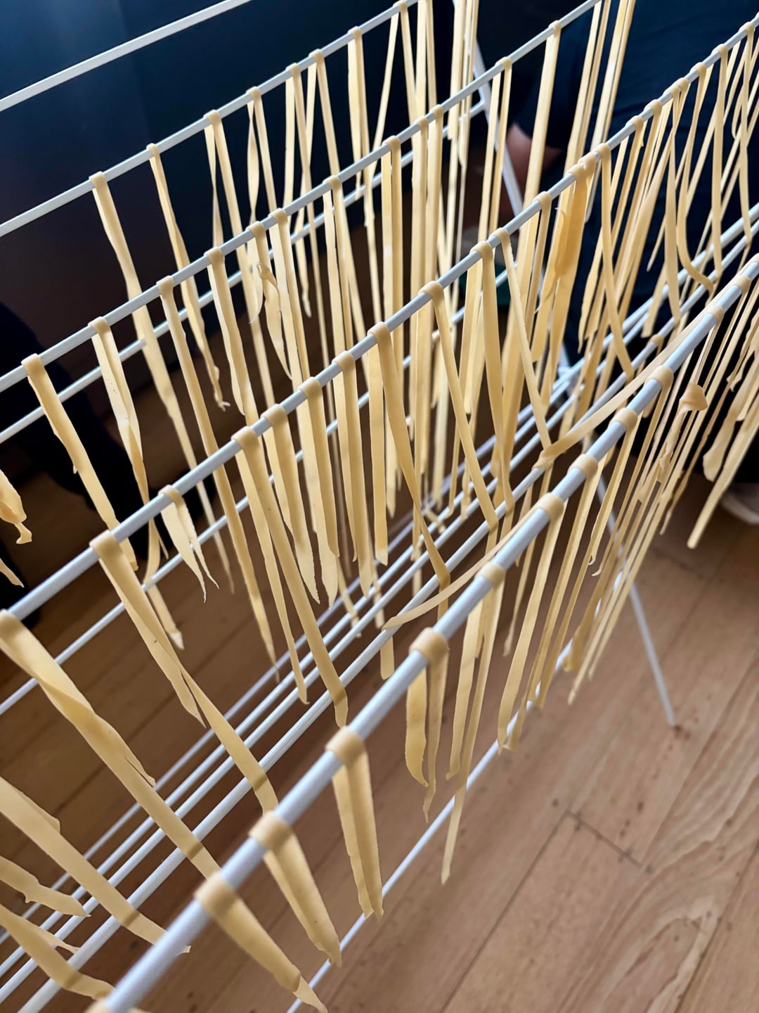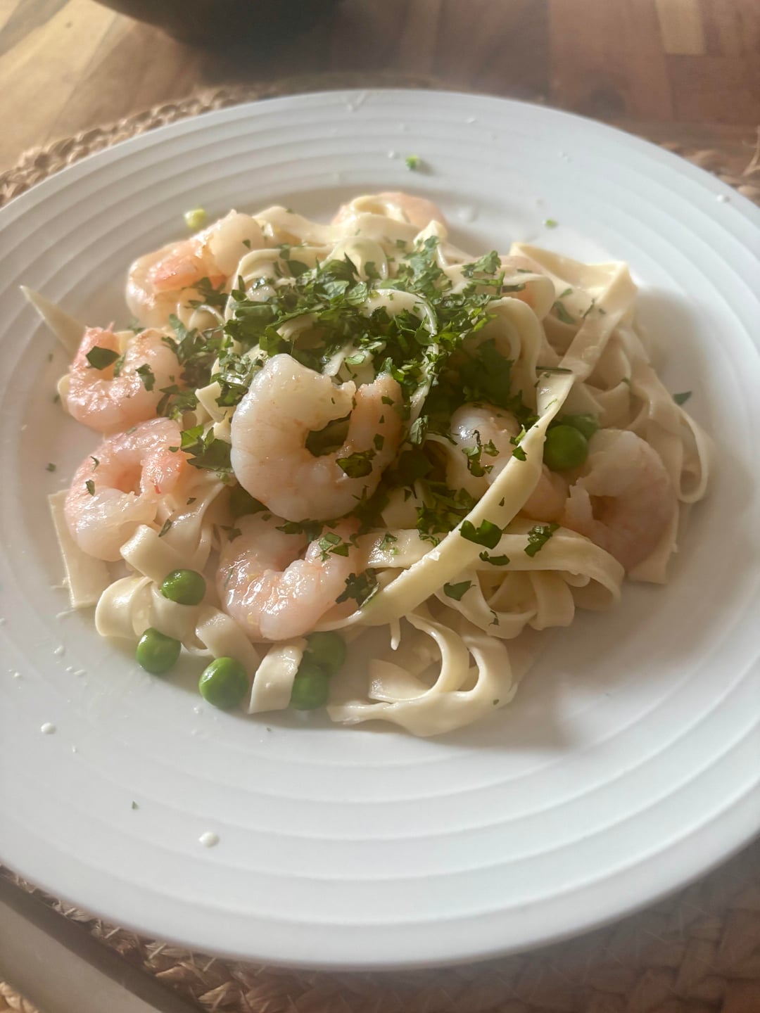 – Tagliatelle in a cream sauce with prawns, lemon, garlic and a touch of parsley & mint