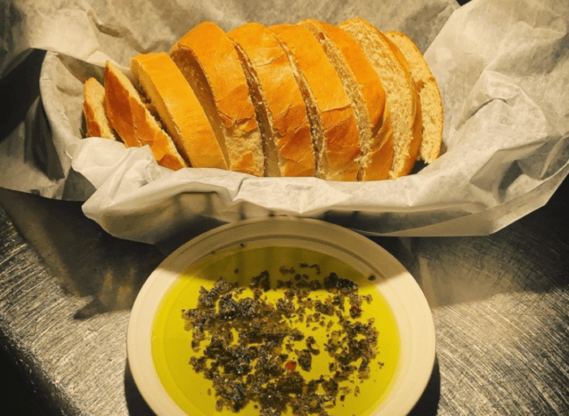 Carrabba’s Italian Grill offers delicious bread and olive, complimentary for all guests. “The bread and dipping combo you crave! Our blend of fresh herbs and spices perfectly seasons our extra virgin olive oil for dipping your bread!” the chain says.
