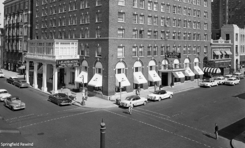 A view of Springfield’s Leland Hotel, birthplace of the horseshoe sandwich, circa 1955. Credit: Facebook/Springfield Rewind, Randy Miller