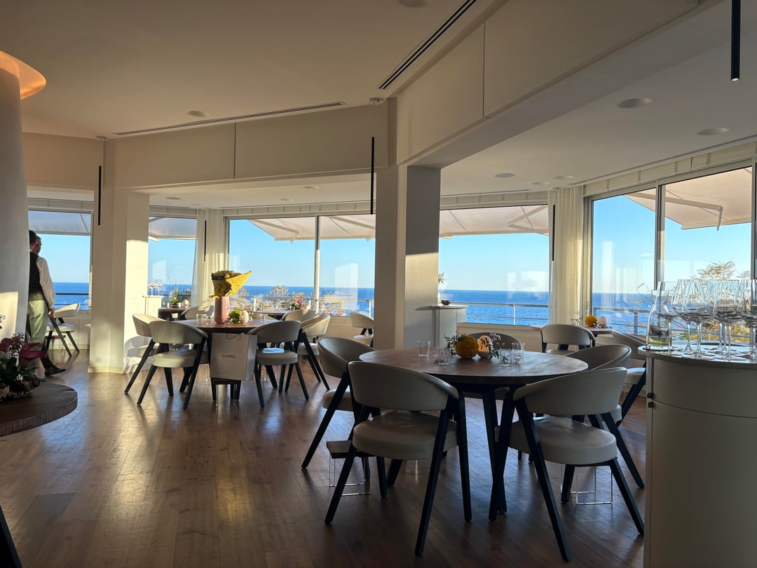 Moving on to the main dining room, which also has a fantastic view of the Mediterranean. Love the architecture.