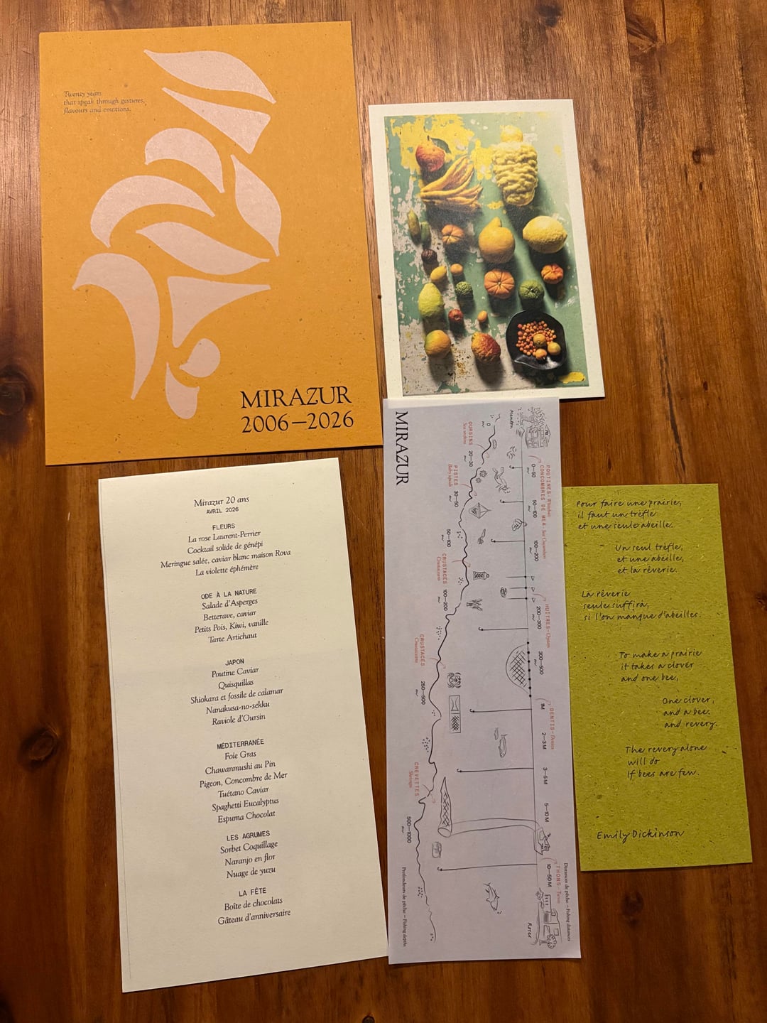 Different from El Bulli or Disfrutar, Mirazur does not have a history of meticulously cataloguing and archiving menus, nor a long tradition of signature dishes that stay on the menu at all times. So part of the preparation for the menu involved hunting down old reviews and blog posts about Mirazur that had photos, to track down what Mirazur used to look and taste like 20 years ago.