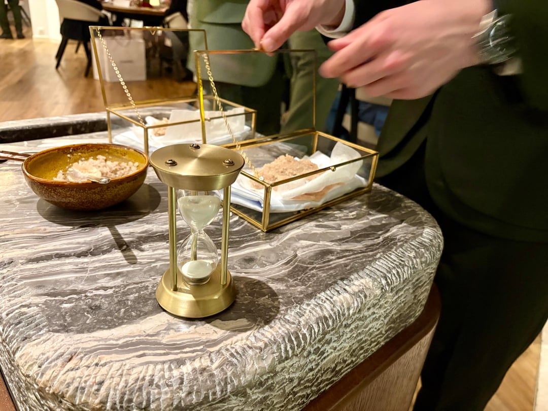 As they wanted to do a more extensive menu than the usual 9 course menu they offer, they tried to reduce the amount of gluten and carbs as much as possible to be able to serve more courses without diners feeling too full midway through.