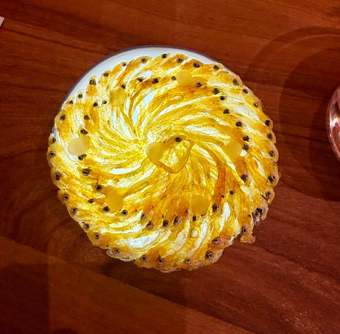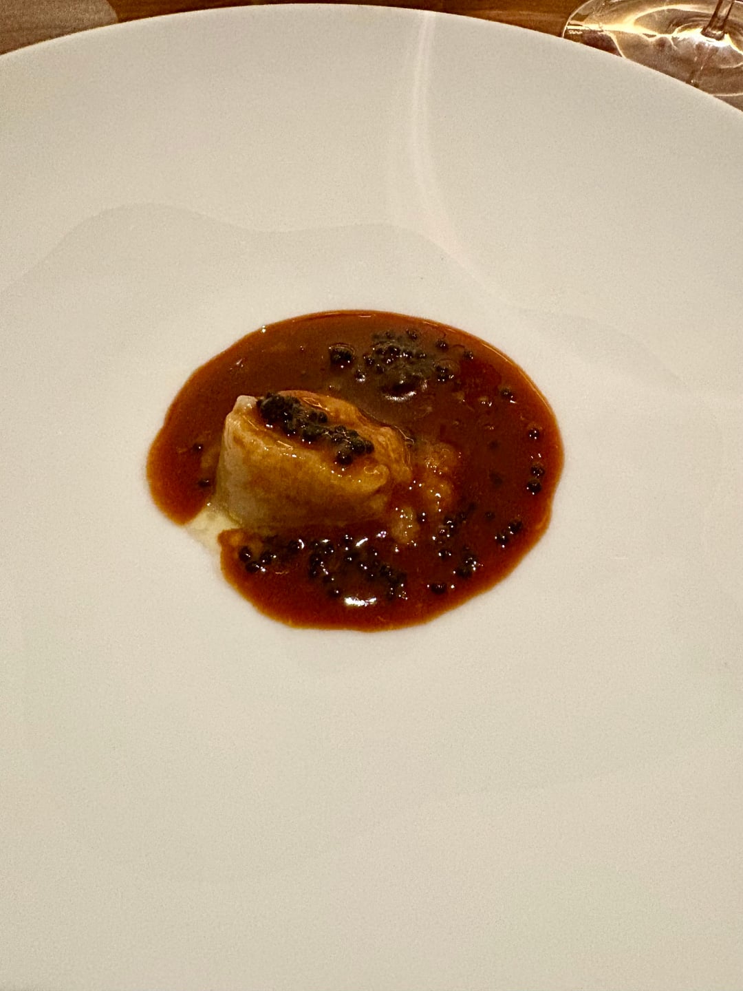 • **Sea urchin ravioli** — creamy, sweet, with a nice umami/briny undertone; excellent uni
