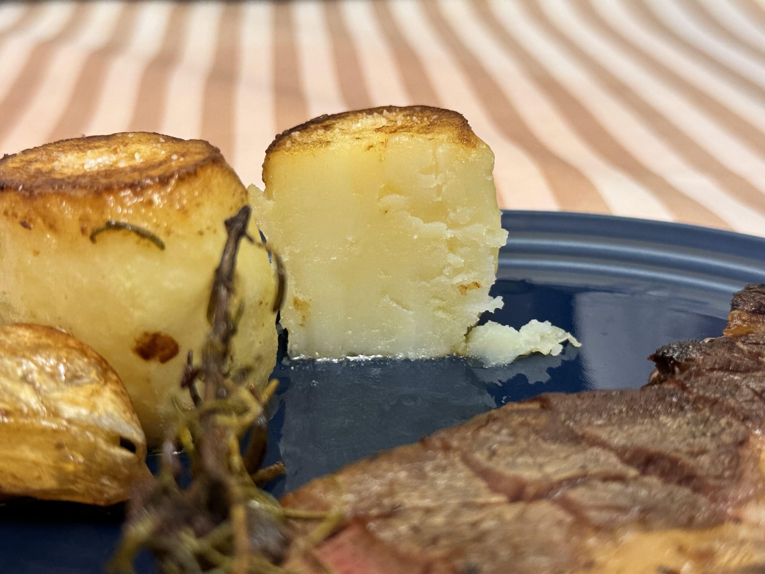A date night dinner that doesn’t break the bank. With just a bit of patience, you can make savoury, buttery and crusty potatoes that will steal the show from the steak.