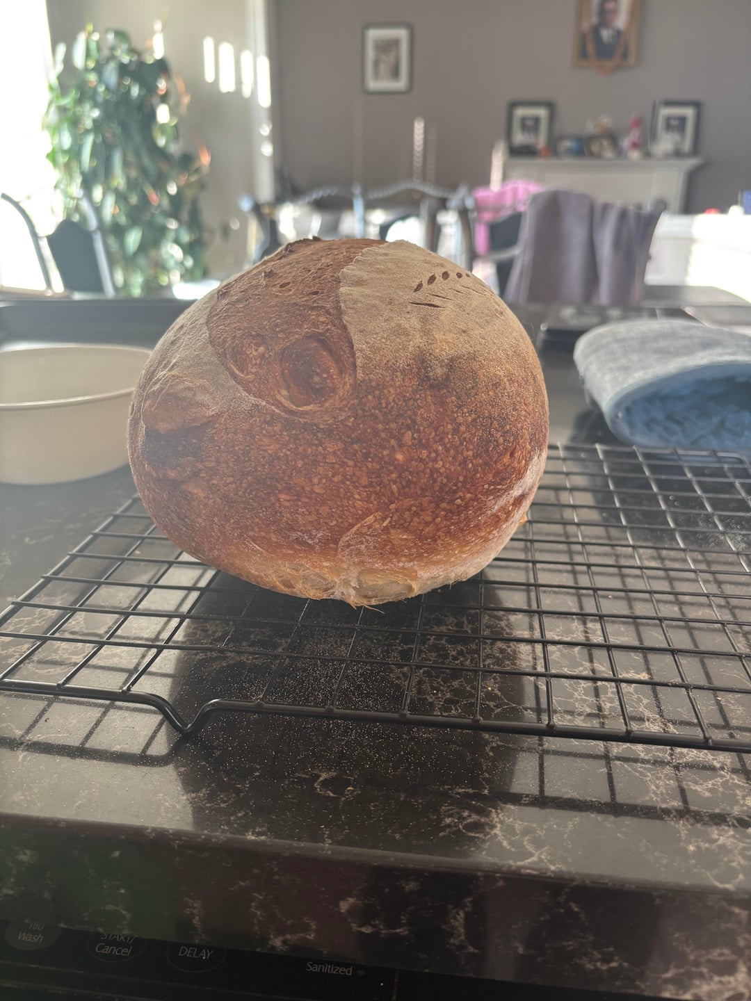I cooked it with the steam at 475°f for 15 mins and then removed the cast iron, dropped the temp to 450°f for 15 mins. The crust got a lot darker and harder than I’m used to getting from my Dutch oven.