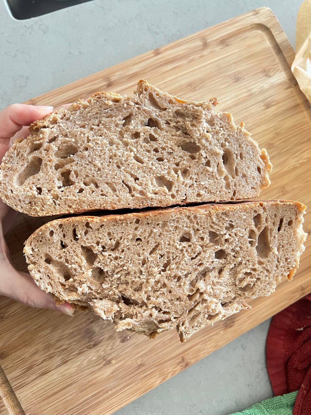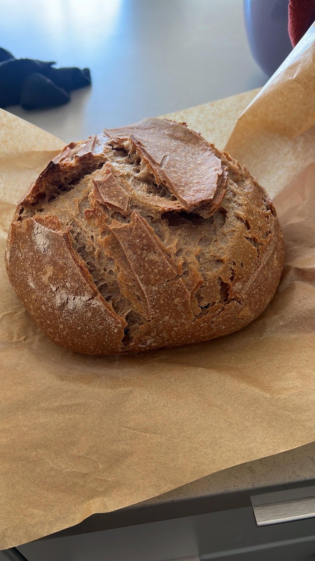 I’d maybe experiment with using a little more water in the recipe if you’re going to continue to use whole wheat flour. And maybe spray the top with water before putting it in the oven. It’ll help some with the rogue splitting. But otherwise I’d say you got it. Good job!