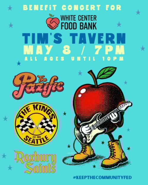 The food bank will also host a benefit concert on Friday, May 8 at Tim’s Tavern, running from 7 to 10 p.m. The event will feature performances by Roxbury Saints, The Kings of Seattle and The Pazific. Proceeds from ticket sales and donations of shelf stable food will support the food bank’s programs.