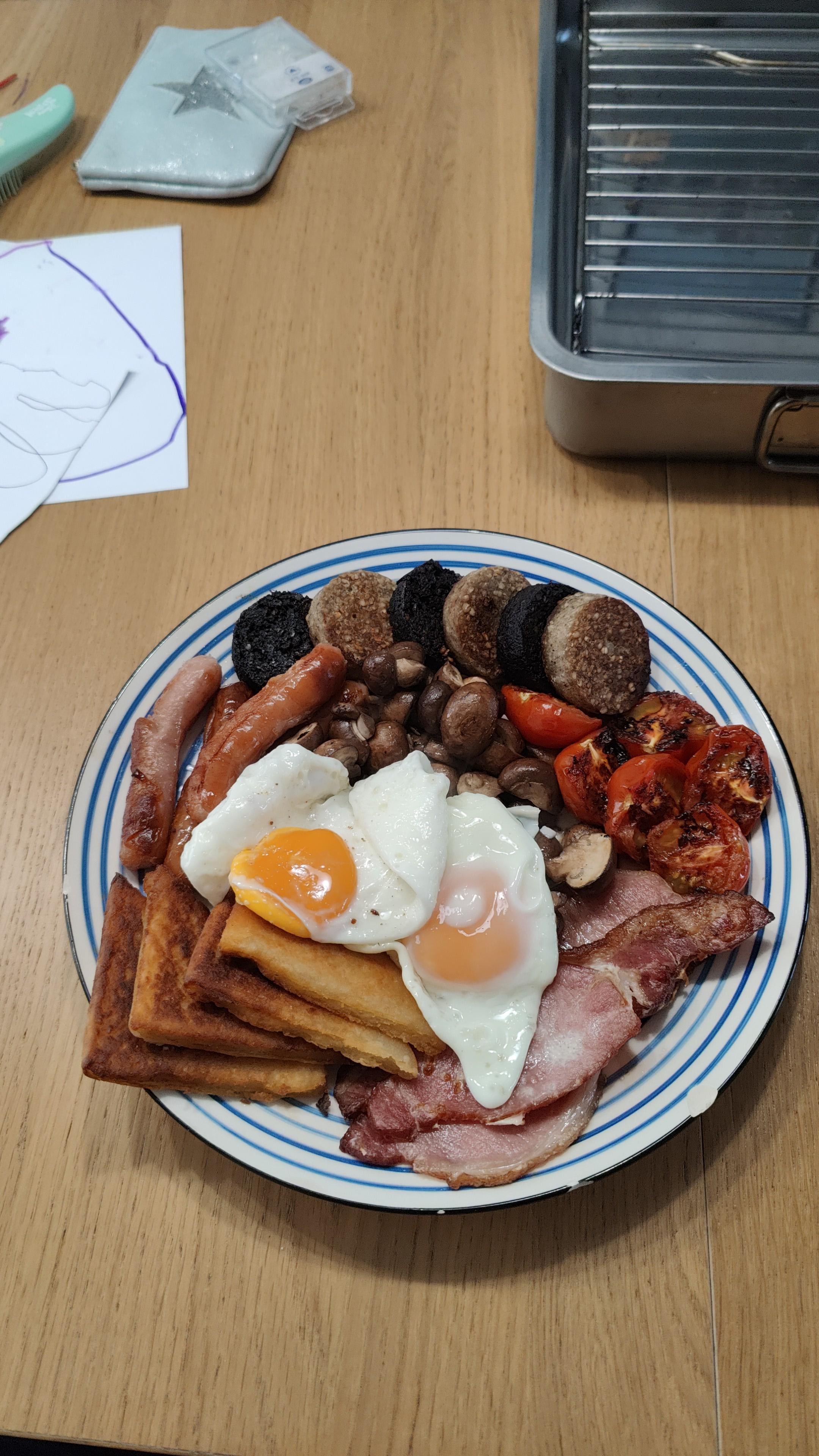 Went for the Clonakilty sausages. Couldn't find soda bread in my local supermarket (shelves were bare).Had this at 0930 today and still not hungry.Hope everyone had a good day too! by DookieofHazard Dining and Cooking