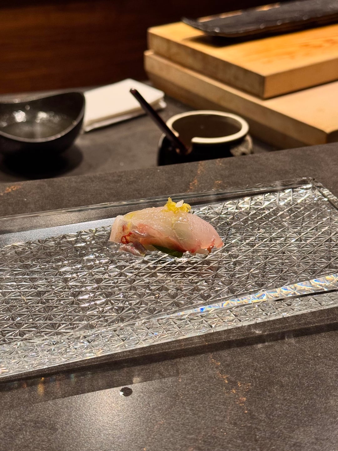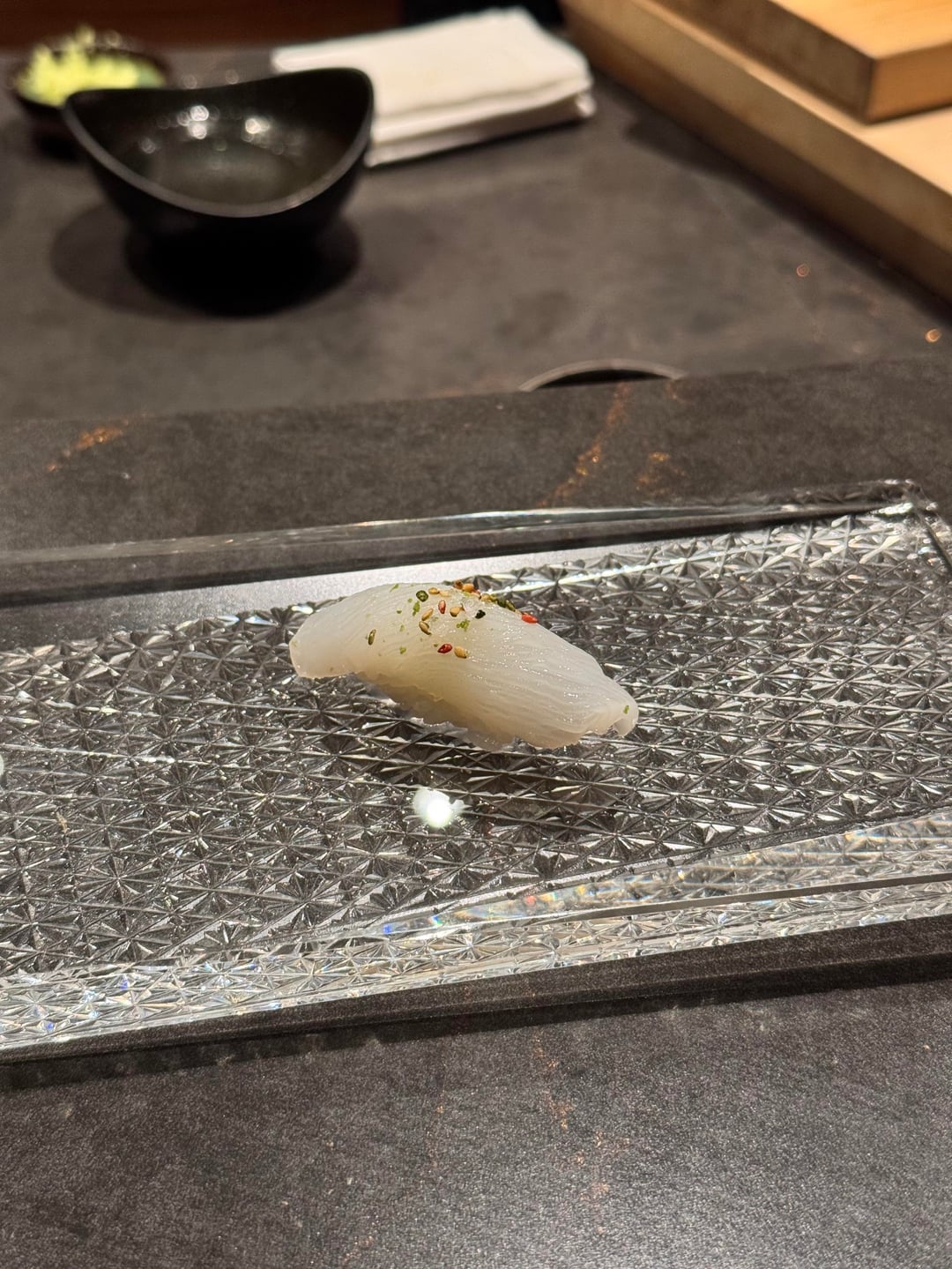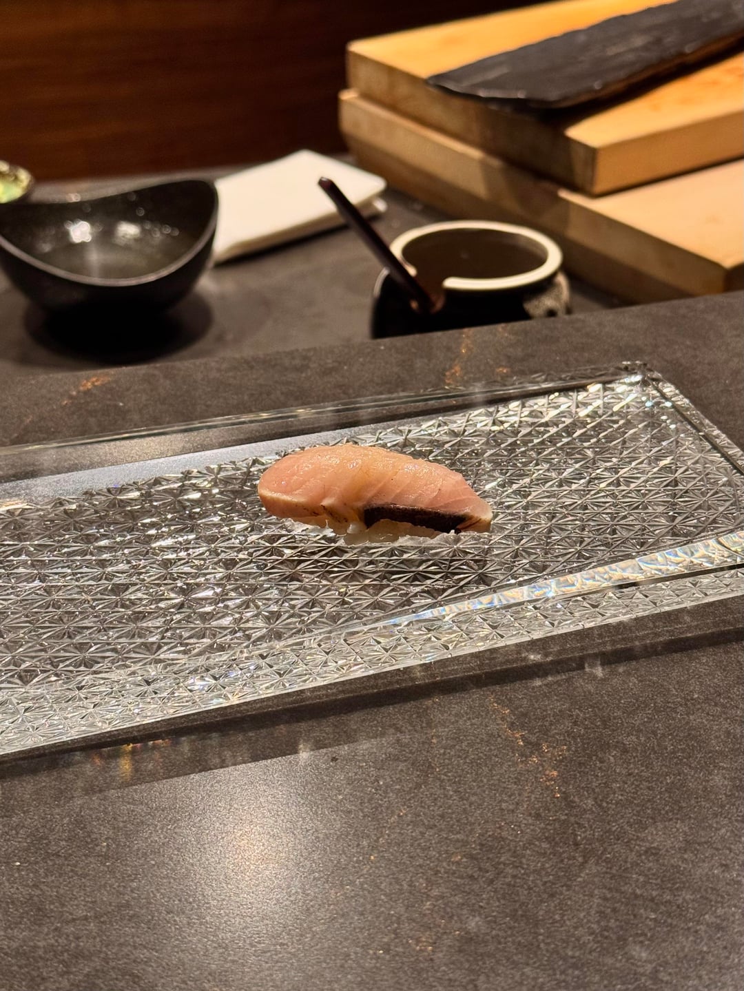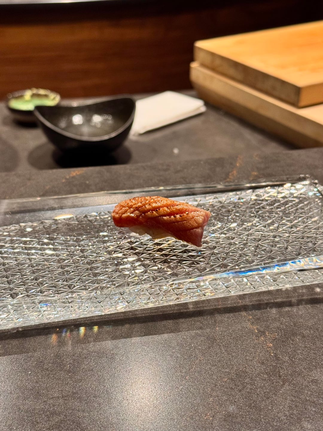 I really enjoyed the omakase! The service was fantastic and the chefs were interactive and so much fun to talk to. Every dish was enjoyable and nothing was bad, but there weren’t any real standout dishes. If I had to pick, my favorite dish of the night was the wagyu or tuna tartare w/ caviar. The nigiri was great. All the toppings they used worked perfectly together and there was an appropriate amount of wasabi. The best nigiri was the akami – it was marinated and blew me away; definitely the best akami I’ve ever had so far. 2 out of 3 of the desserts were boring, but the banana sticky toffee pudding was amazing and I don’t normally enjoy banana desserts. It was warm and gooey topped with caramel and paired with the perfect banana ice cream.