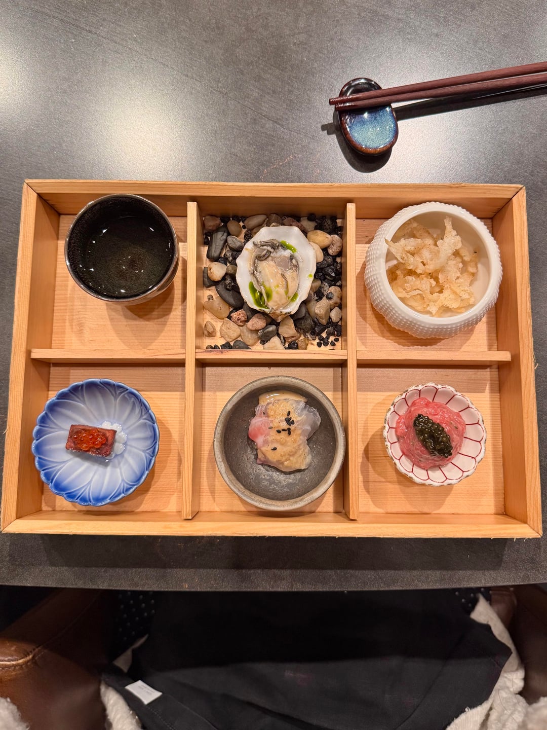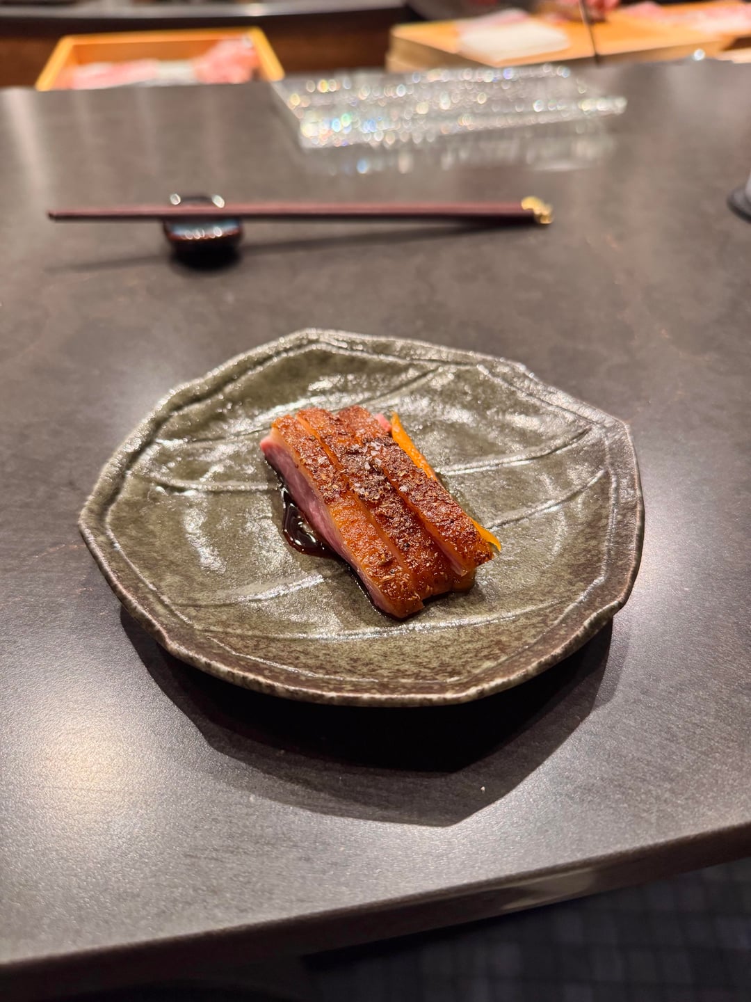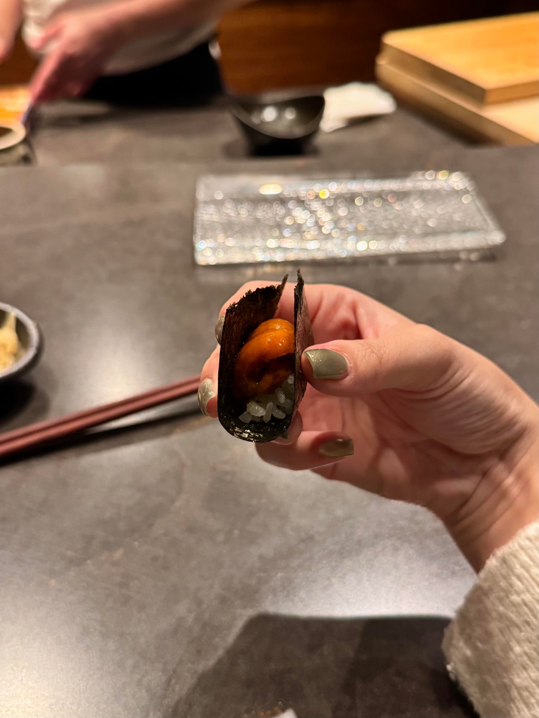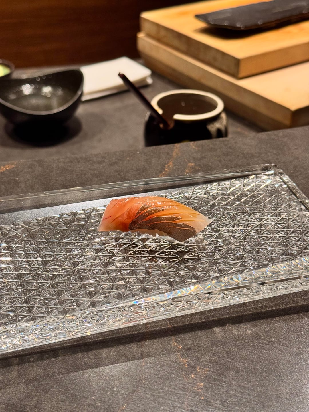 I really enjoyed the omakase! The service was fantastic and the chefs were interactive and so much fun to talk to. Every dish was enjoyable and nothing was bad, but there weren’t any real standout dishes. If I had to pick, my favorite dish of the night was the wagyu or tuna tartare w/ caviar. The nigiri was great. All the toppings they used worked perfectly together and there was an appropriate amount of wasabi. The best nigiri was the akami – it was marinated and blew me away; definitely the best akami I’ve ever had so far. 2 out of 3 of the desserts were boring, but the banana sticky toffee pudding was amazing and I don’t normally enjoy banana desserts. It was warm and gooey topped with caramel and paired with the perfect banana ice cream.