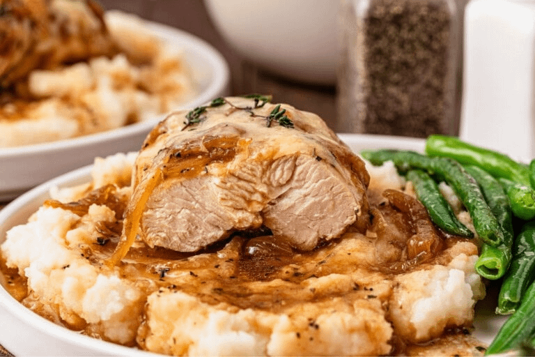 This [**French Onion Soup Chicken**](https://www.kimschob.com/french-onion-soup-chicken/) combines two favorites into one incredible dish, ready in about **45 minutes**. The tender chicken breasts are smothered in caramelized onions and topped with melty gruyere cheese for a fun twist on classic French onion soup.