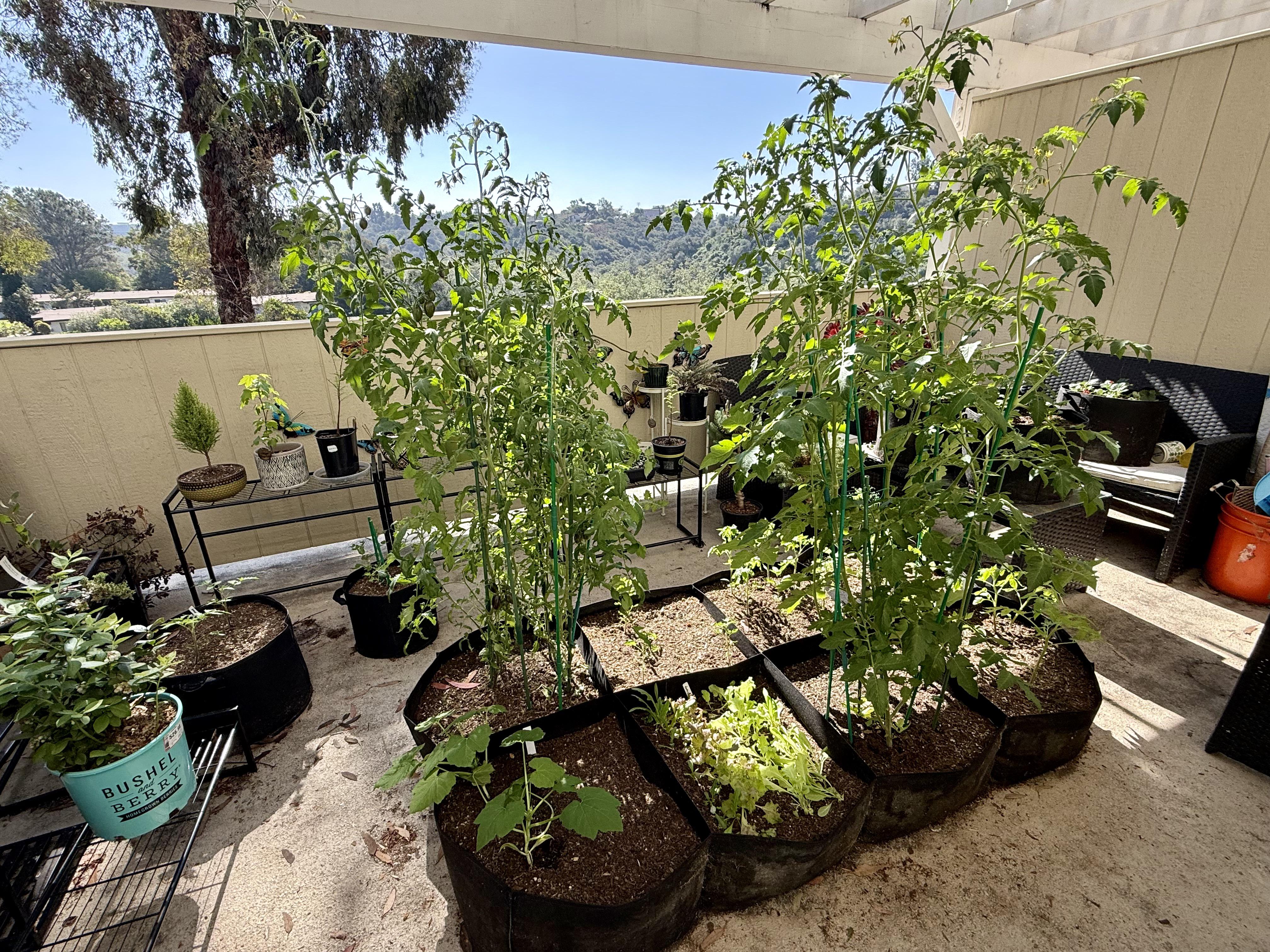 Just sharing my little deck garden. I had several volunteer tomato plants come up late December, and the plants from seeds I sowed in Feb are fighting for their life to try and get sun. I’m a bit of a chaos gardener so not sweating it. May the best plants win! Also apparently I need to sweep.