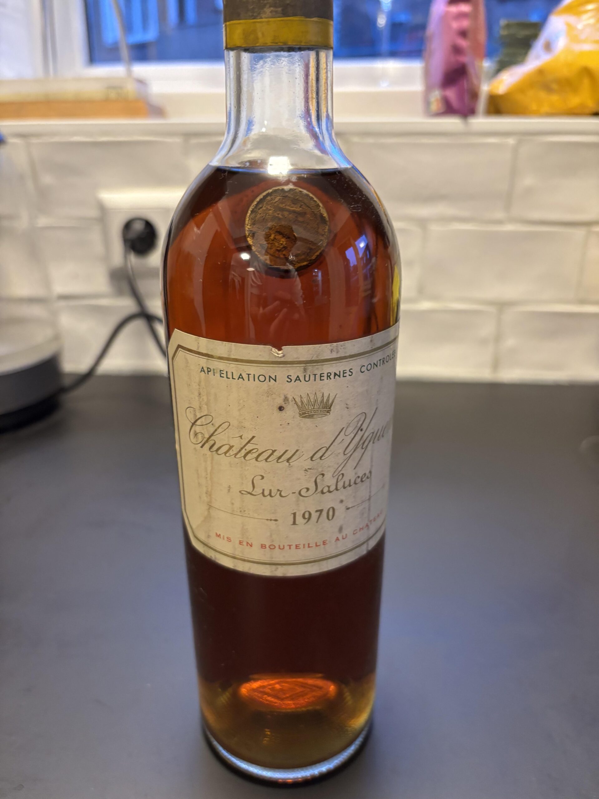 So I got given two bottles of this Yquem 1970 from my grandpas cellar. The cork of this bottle was already quit deep in the neck and one day decided to drop in. I didn’t have high hopes for it anyway since it already showed signes of leakage, but I tasted it anyways. The first couple sips were a bit shit. On the nose it was that of raisins and tropical fruits, but after tasting it there was this bitter aftertaste that ruined the wine completely. But since it’s Yquem I didn’t wanna throw it down the drain immediately and first let my friends have a couple sips too. So I put it back in the fridge and I took it out a couple days later to let my friends have a taste. Well it turns out the whole bitter aftertaste was gone and all that was left is this beautiful wine that smelled like the most beautiful combination of tropical fruits and baked good and tasted like a tarte tatin made with mango and pineapple but with just the right amount of acidity to keep coming back. I dunno how this is possible, but I can’t wait to see how the other bottle of Yquem will be. The other one looks to be in amazing condition.