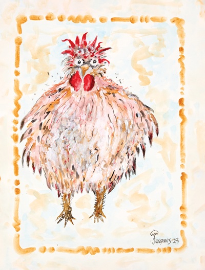 A painting of a chicken by Jacques Pépin that appears in his book The Art of Jacques Pépin (Used with permission from the publisher)