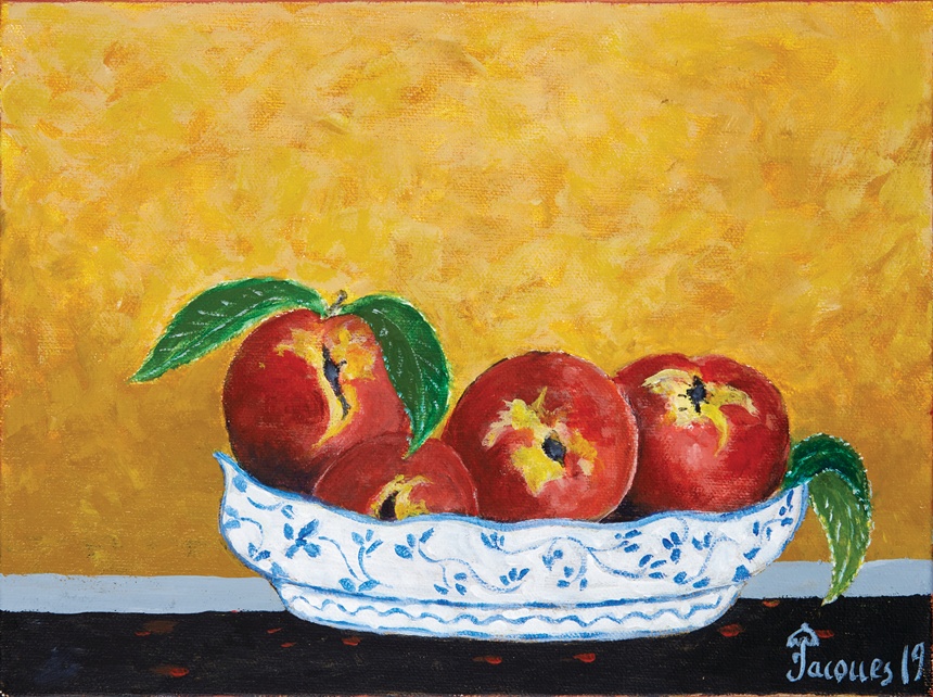 A painting of peaches by Jacques Pépin that appears in his book The Art of Jacques Pépin (Used with permission from the publisher)