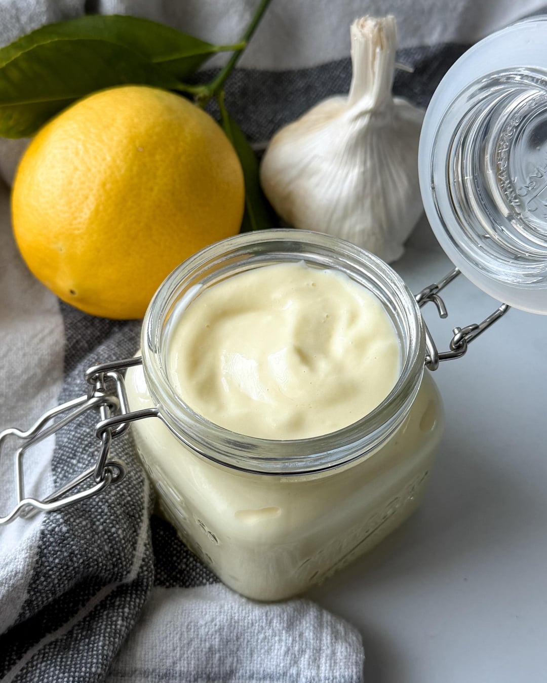 * ~1 cup neutral oil (I use sunflower seed oil or avocado oil) * 2 large eggs, room temperature * ½ to 1 tablespoon freshly minced garlic (adjust to personal preference) * ½ teaspoon table salt * 1 tablespoon lemon juice * 1 teaspoon lemon zest (optional)