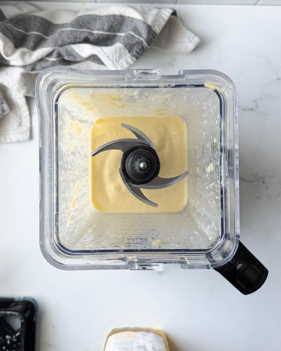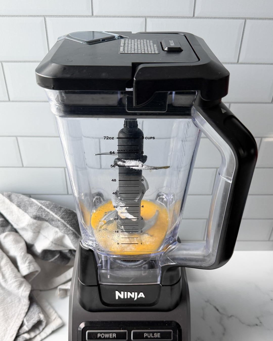 2. Add the garlic, lemon zest (if using), salt, and ~½ teaspoon of the oil into the blender with the eggs.