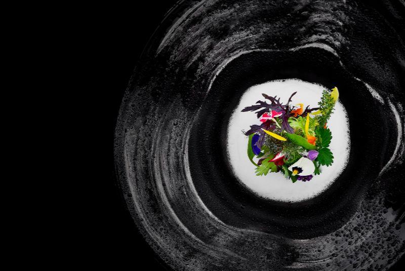 Restaurant Kei’s Garden of Vegetables Salad has stayed on the menu since opening, though its recipe of flowers and greens set on yoghurt foam evolves with the seasons (Image: Richard Haughton)