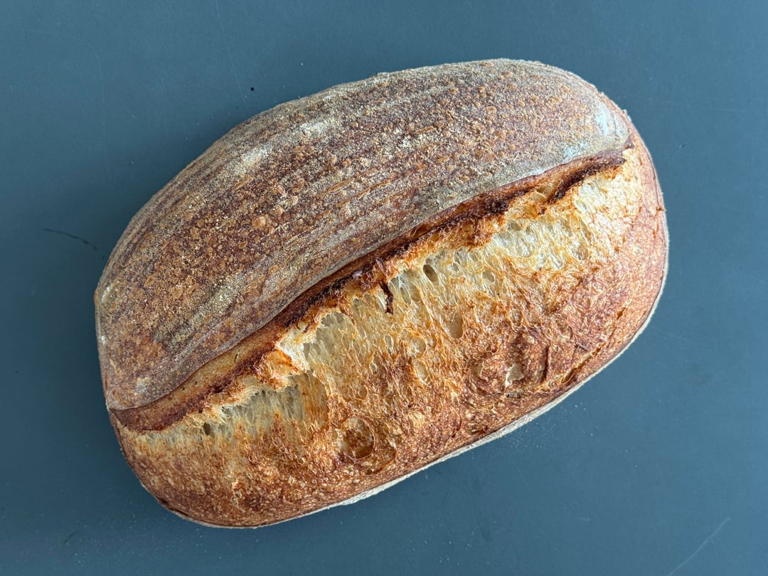 The loaf was absolutely delicious. Very soft crumb and a light and chewy, but still crispy crust. The sourness was more pronounced although the overall taste was lighter/less complex. My son and I were both giggling when we lifted the cloche. Made for a great soft sandwich.