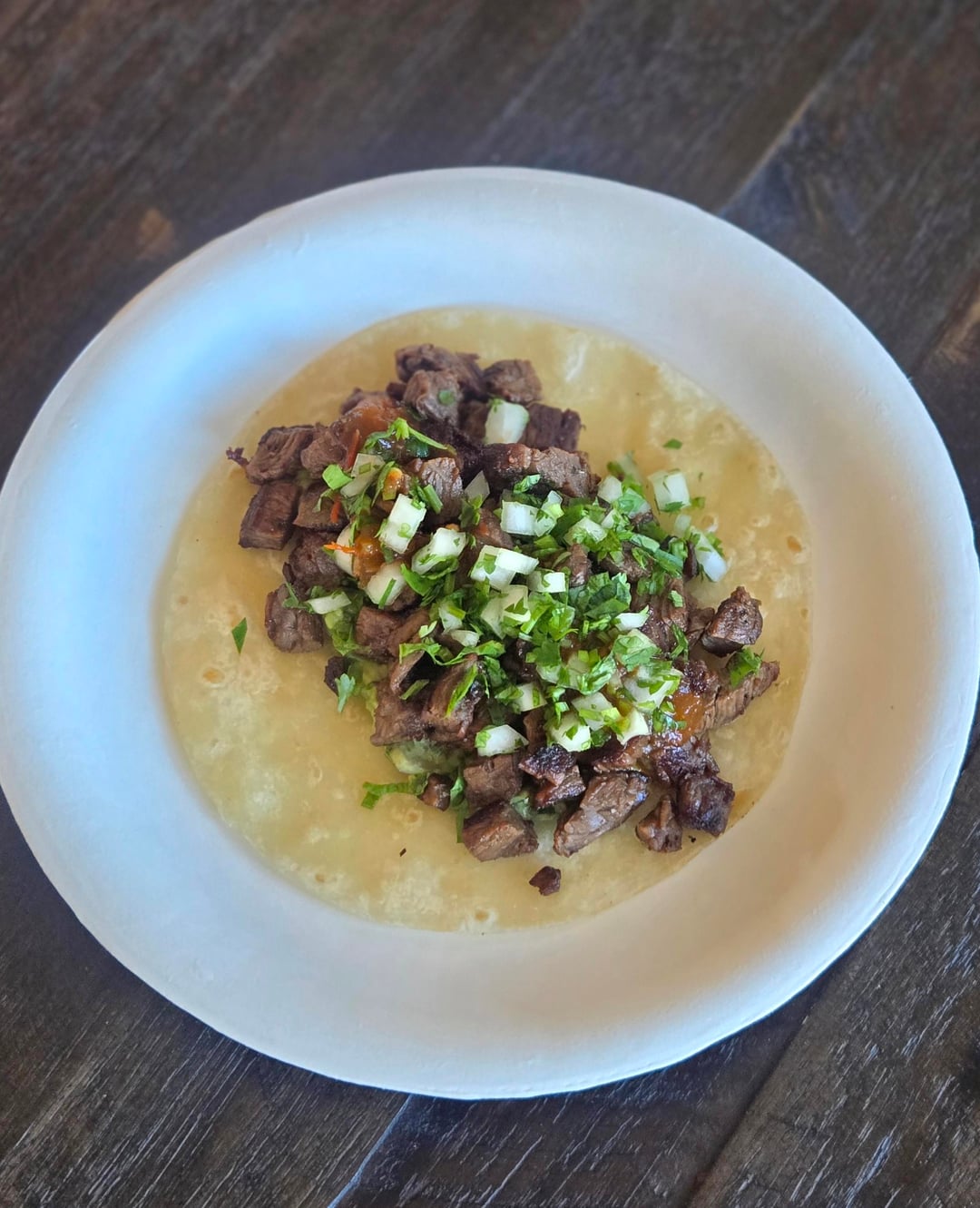 Carne Asada with guacamole on flour tortilla