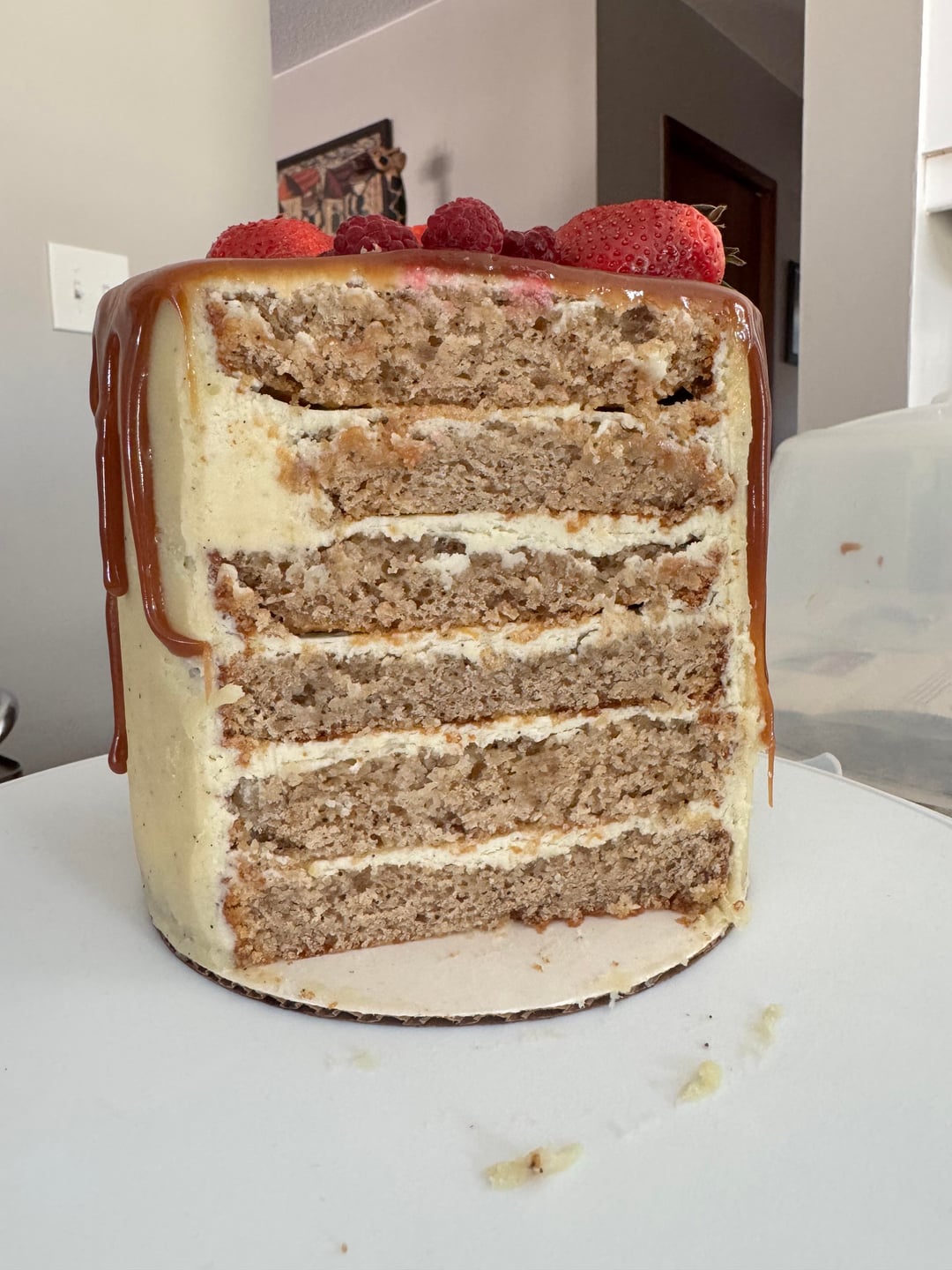 Vanilla Earl Grey cake layers, Earl Grey Swiss Meringue & a Caramel Drip on topby confident-pie13 10 Comments Content_Jellyfish113 6 days ago Gorgeous!! PhxCuckGuy 6 days ago Looks fantastic! vibesdealer 6 days ago Wow! Beautiful cake. Love a London Fog! Beautiful_Compote393 6 days ago Look moister, wish I can taste Outrageous_Stress_51 6 days ago YUM! beautifulcabbage 6 days ago Awesome. The drip is beautiful. Icy-Firefighter6900 6 days ago Daaamn,that’s perfect!! Difficult-Uses 6 days ago That Earl Grey infusion in the cake and meringue sounds like a perfect cozy treat with that caramel drip. Classic-Body1965 6 days ago Yum!!!!!! 😋 Mimi_Gardens 6 days ago What happened to that second layer? I do like how you stuck it in there anyway. Some icing lover is gonna be extra happy with that bite.