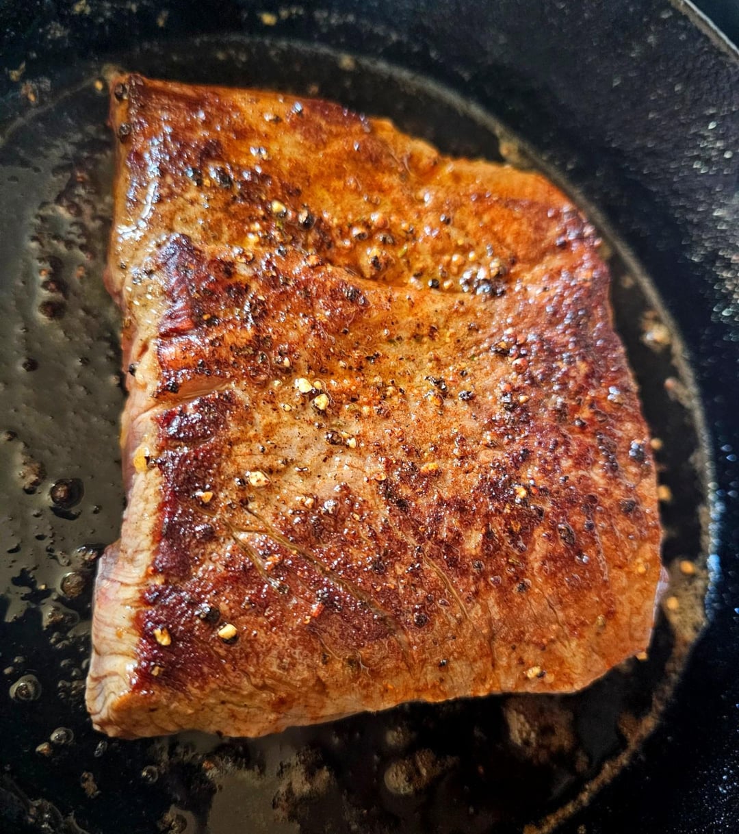 Flank steak w/ s&p, sear, then simmer in consomé until it falls apart.