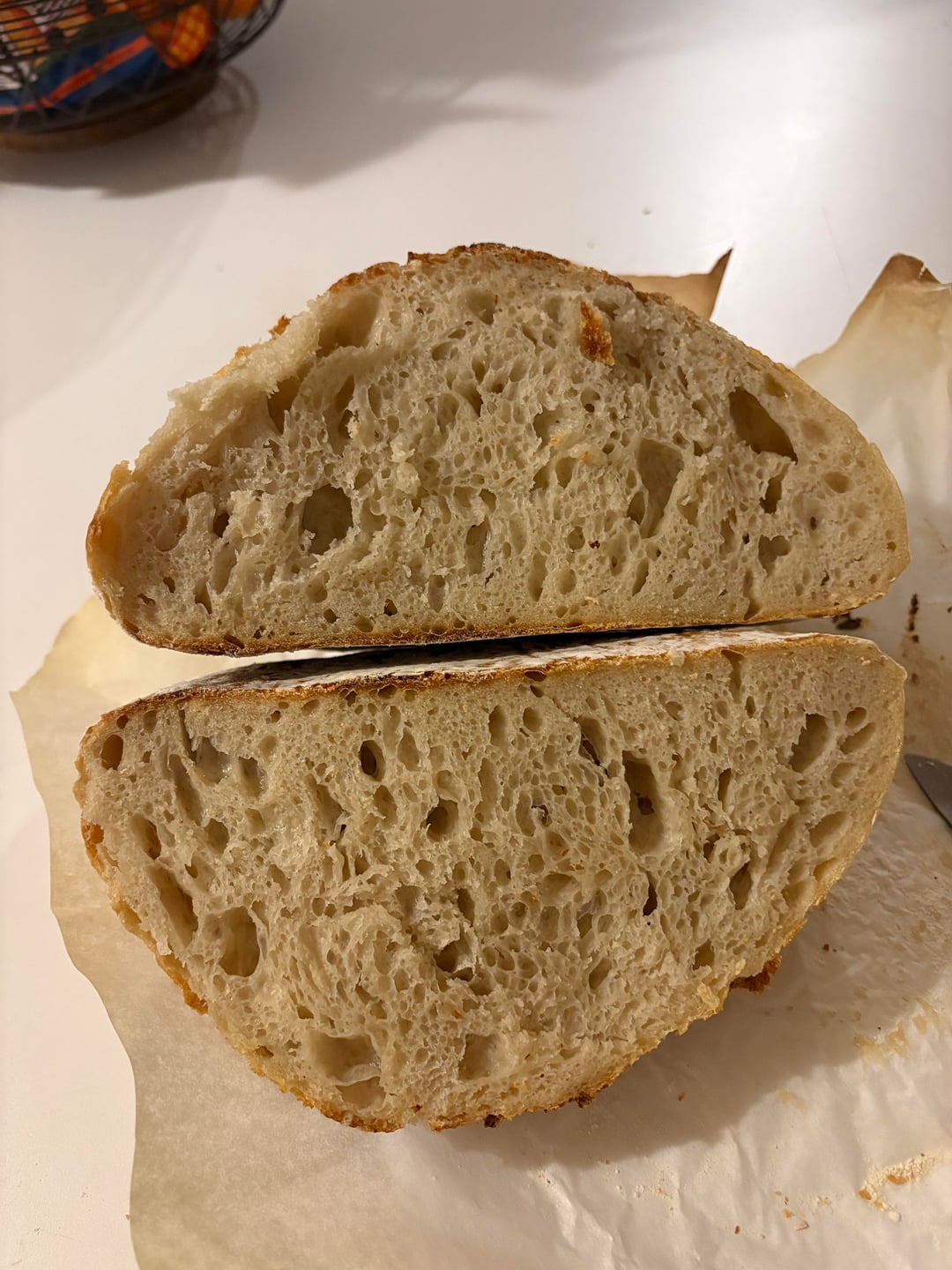I used less starter, used some spelt and ww, (over)proofed for a bit too long…
