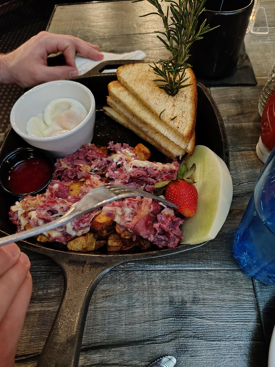 Sage fried chicken and eggs, and corned beef hash skillet! and honestly, that biscuit was bigger than my cup of coffee!by drewdurfee Dining and Cooking