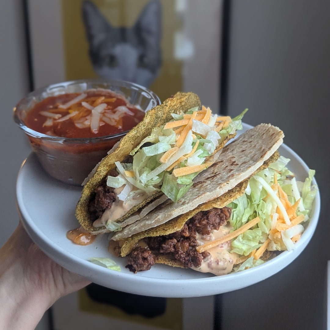 7.) Cheesy Gordita Crunches + pintos and cheese.