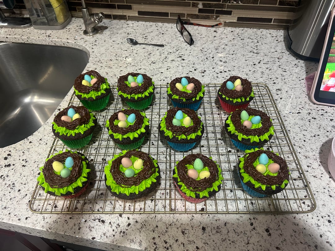 Omg, I swear, I baked the same nest cupcakes two years ago! Although the leaves on mine weren’t as neat as yours. Well done!