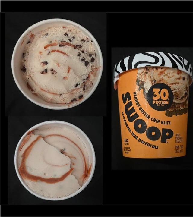 - peanut butter chip blitz: amazing peanut butter swirl, lots of dark chocolate chips thru the pint, light flavored peanut butter vanilla base