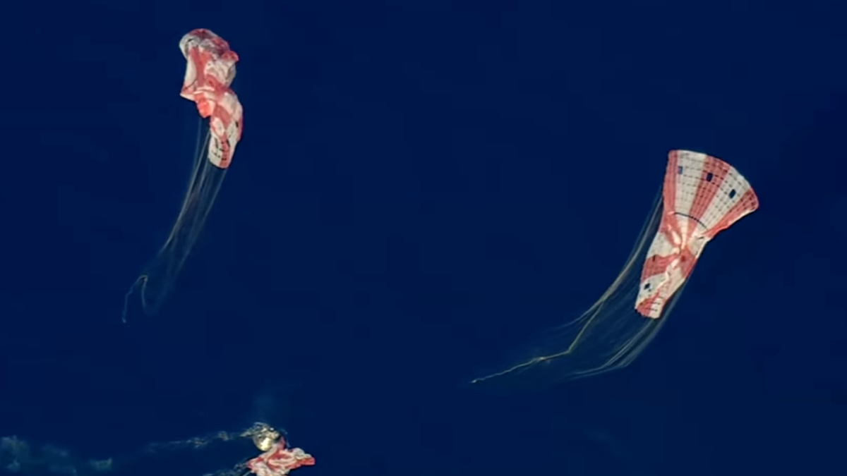 his screengrab from a NASA livestream shows the Orion spacecraft on its way back to the Earth