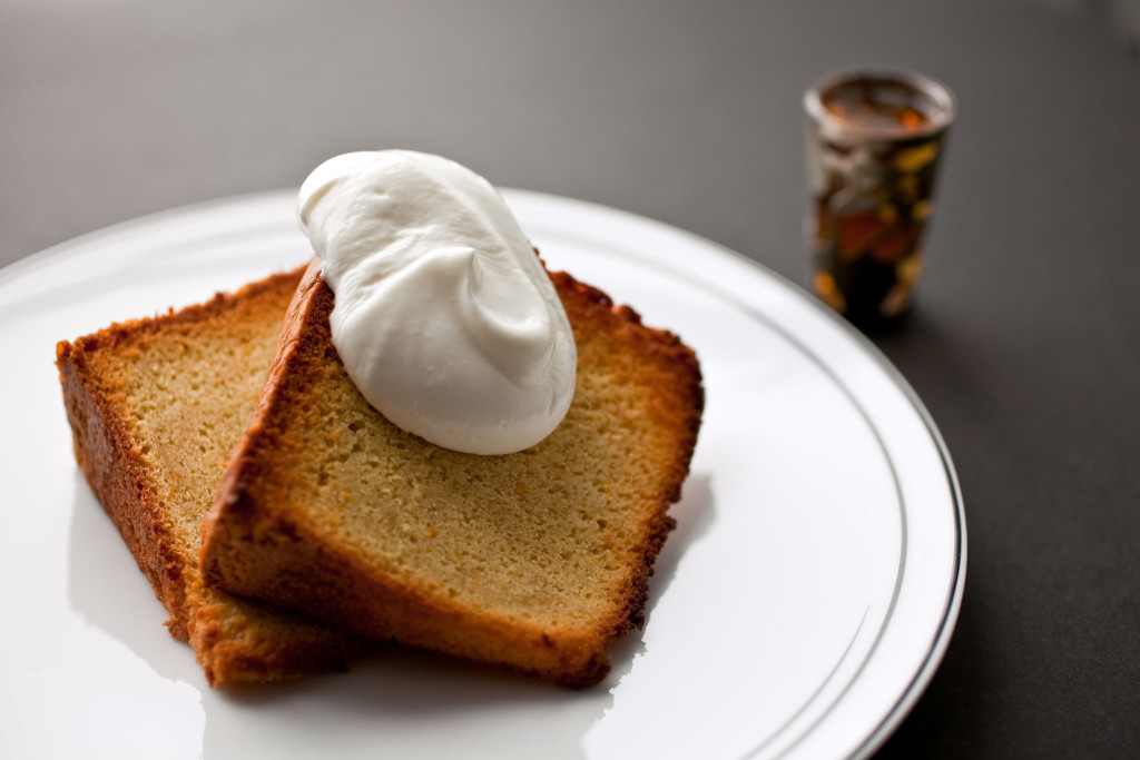 - To serve, cut into 1-inch slices. Lightly toast slices and serve two to a plate with a dollop of whipped cream and, if desired, a shot of rum to pour over warm cake.
