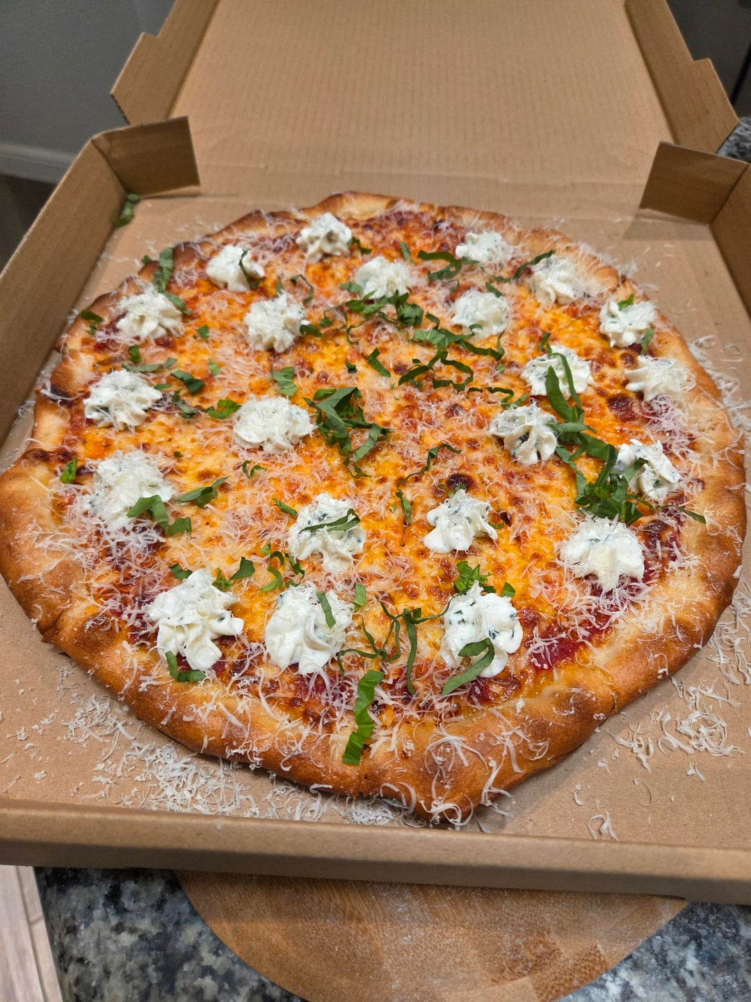 Another fun night making pizzas for the hood! The requests came in strong today so I broke my rules and made 12 pies. I feel like I'm close to being where I want to be on stretching this dough. I just needed to stretch them a touch more to get the texture and bake I was looking for. The last 4 or so pies were dialed. Really nice crunch, firm undercarriage, holds up well in the box too. Pretty stoked on that.