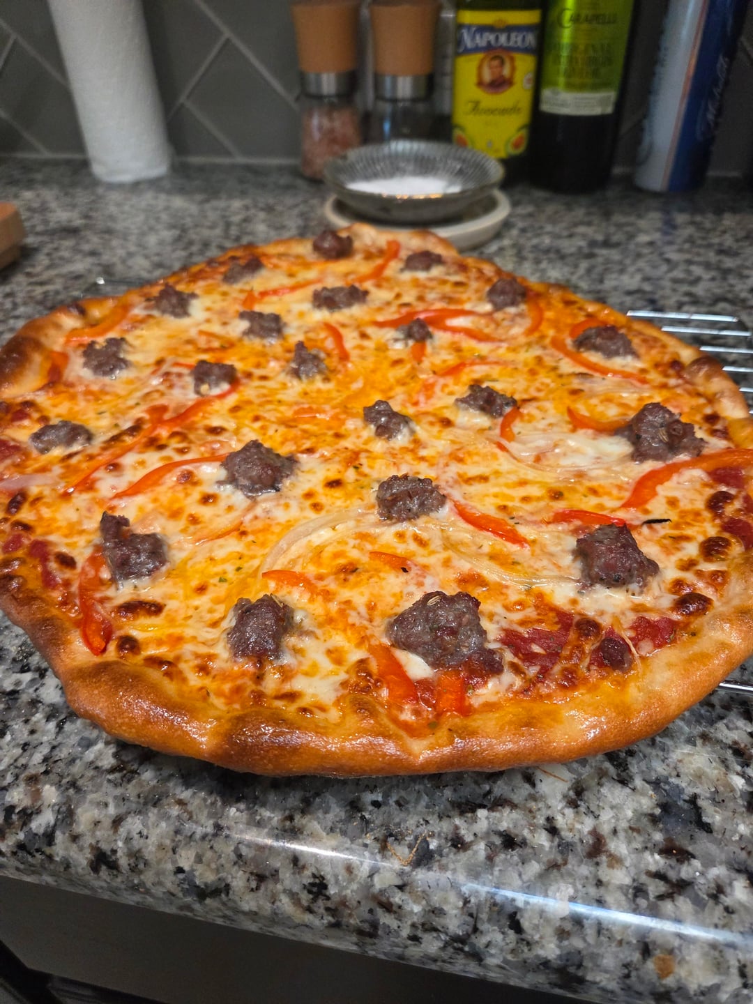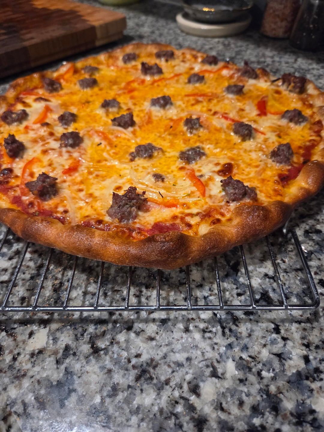 The pizzas look freaking amazing. But more sausage/ground beef was needed or at least broken up more. Otherwise they are perfect IMO.