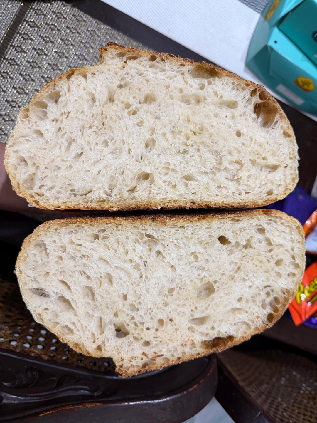 The crust has an interesting look to it. It’s very pretty! But there’s something about the texture that makes me wonder if the bread dried out while proofing. I’ve tried using a banneton for proofing and I really didn’t like how it dried out the surface.