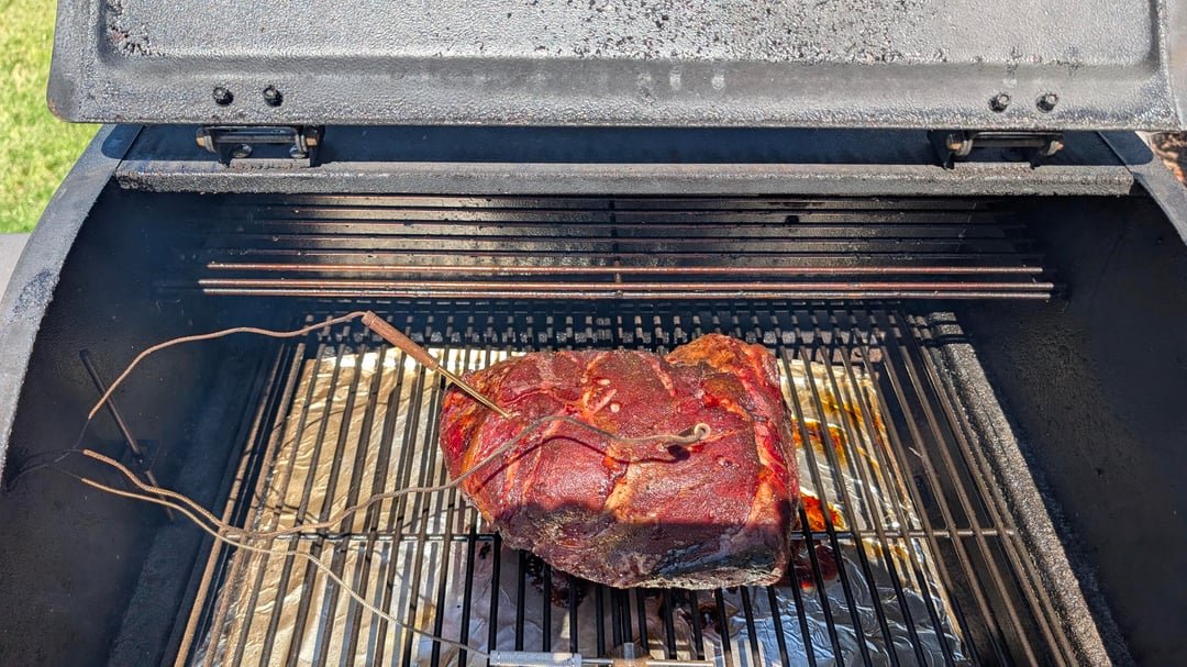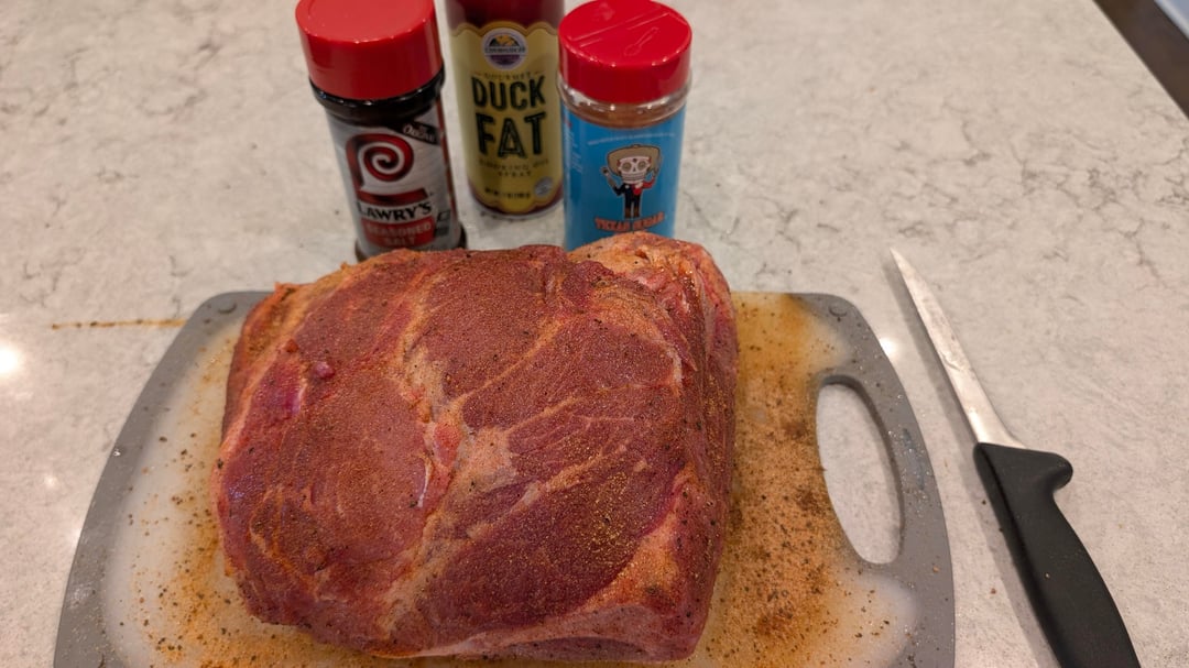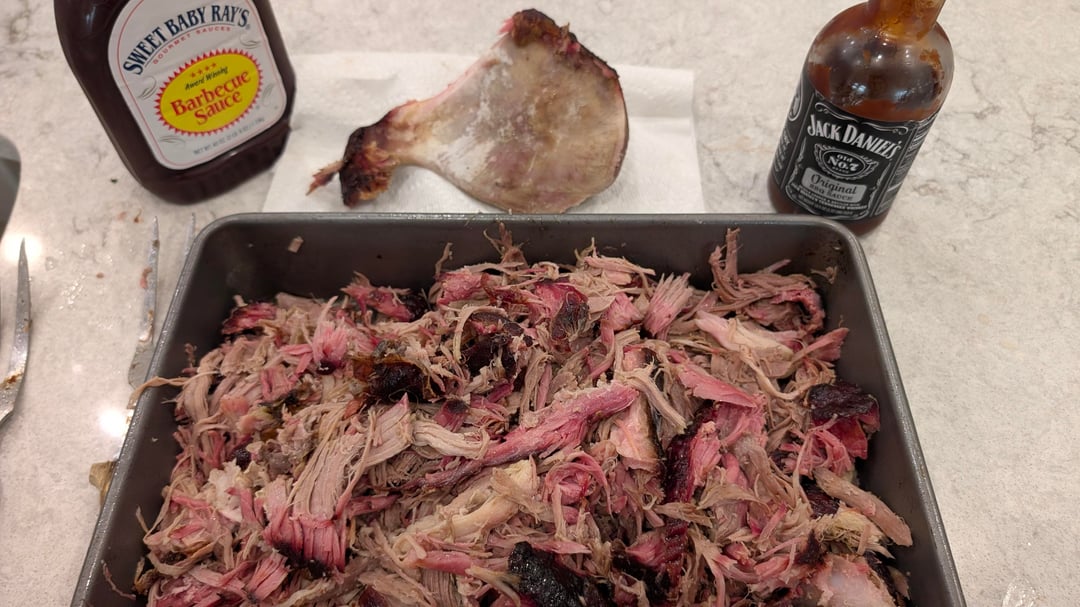 Pho-Soup 1 week ago NC pulled pork and you got Sweet Baby Rays sitting there?!? Where’s the vinegar sauce?? Just messin with ya a bit – looks great! Temp? Wrap/no wrap?