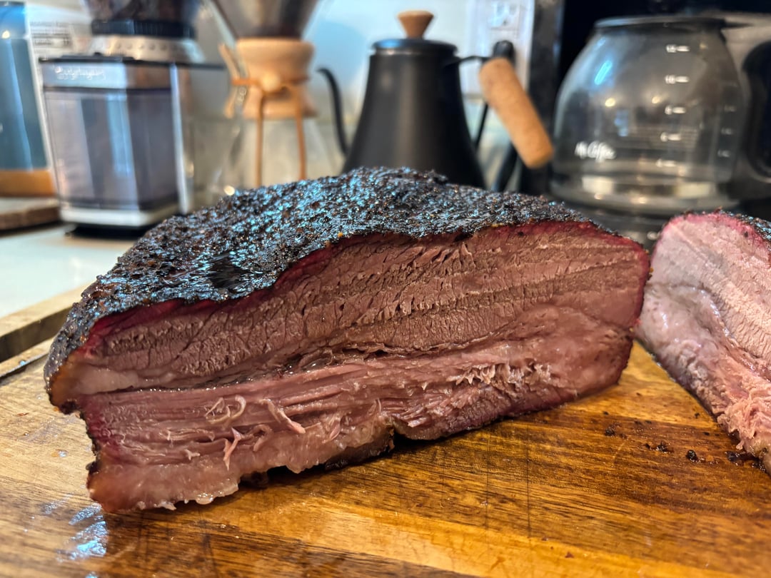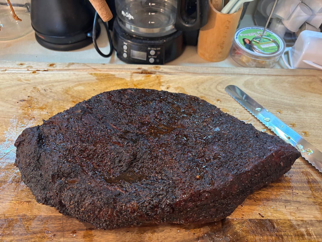 Woke up at 5 am to put this guy on my Member’s Mark Pellet Grill. Started at 250, wrapped with wagyu tallow at 165 internal. Cranked it up to 275 for the last few hours.
