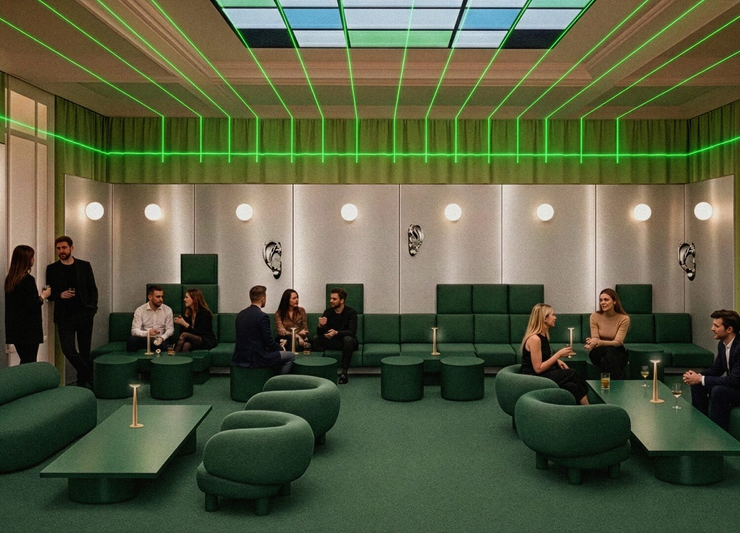 One of the most ambitious projects is Bar Adrenalina, an activation in Palazzo Litta by the homonymous furniture brand, as part of MoscaPartners Variations. Across three rooms in the Boccascena Caffè, a network of microphones captures every sound the bar generates, and the data will then be used to compose an original music work and inform the physical form of a future sofa. Described as a co-design laboratory of sound, the bar invites every visitor to become a co-author.