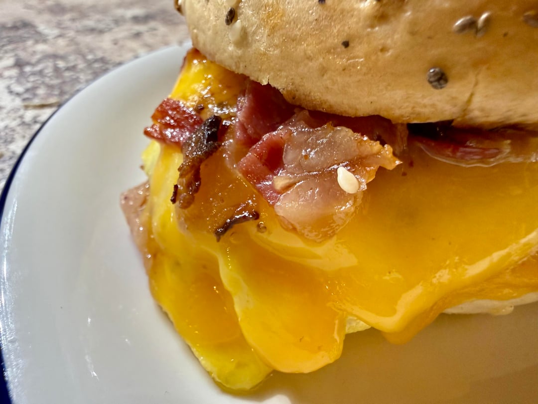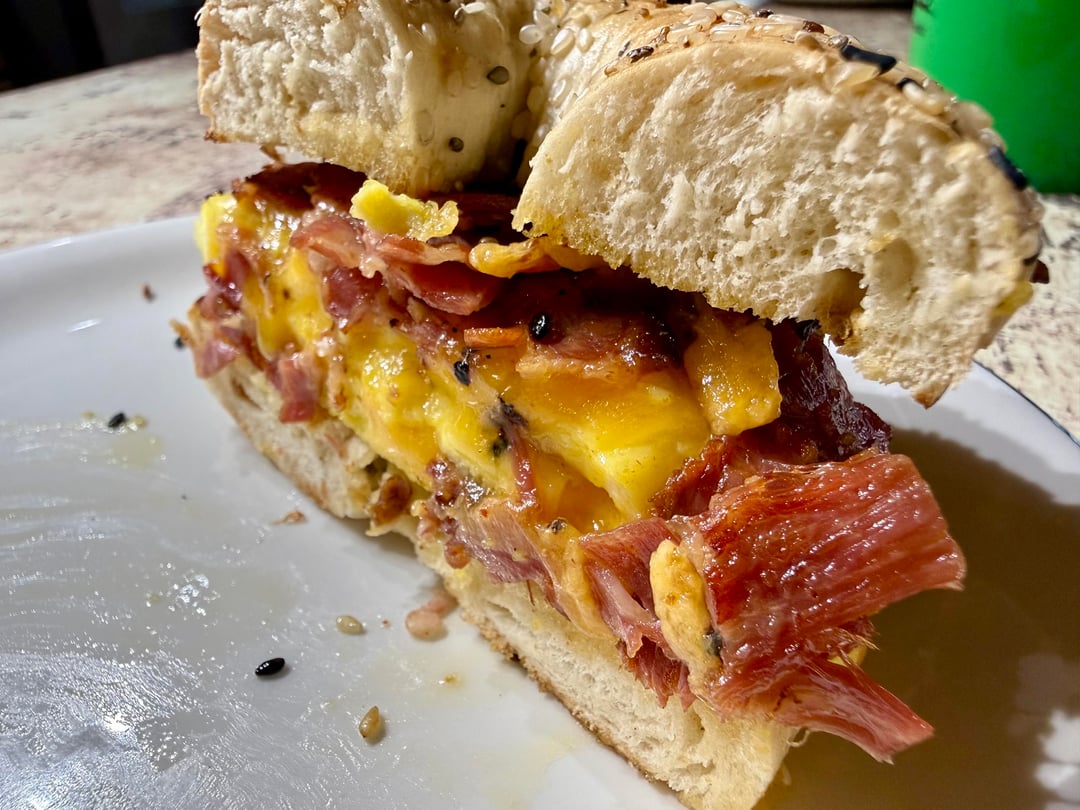 Leftover Wagyu Pastrami on a Everything bagel with Colby cheese and egg.by photog608 Dining and Cooking