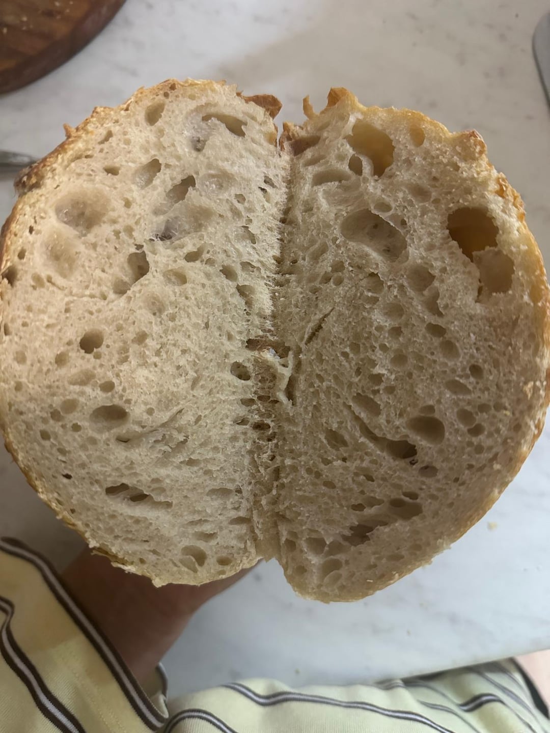 Took it out, shaped it, scored and baked at 450 degrees especially for 30mins Dutch oven lid on and 10mins with lid off.