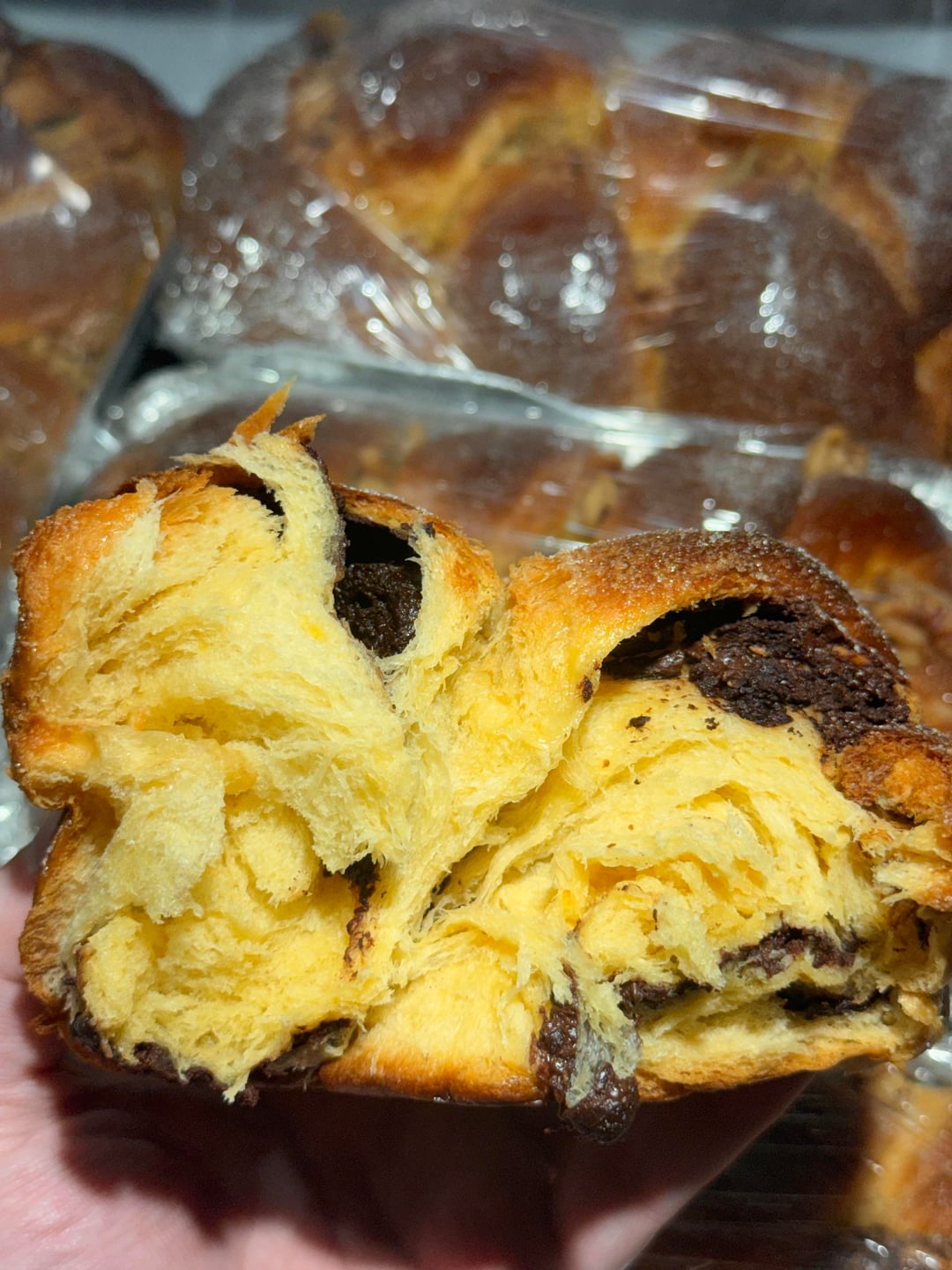 Just wanted to show off my father and I’s Easter creation! This is kozunak (козунак) – a sweet bread made with yeast and eggs (similar to Italian panettone). We made three varieties- plain, rum raisin and chocolate! The base dough is orange flavoured.