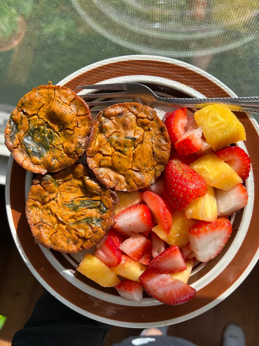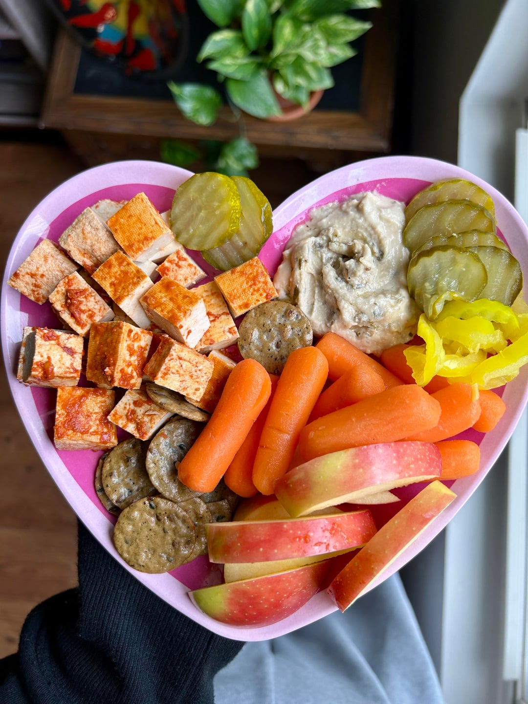 snacky plate, green smoothie bowl, tofu and veggie frittata bites, tofu scramble with pb banana toast, chocolate covered fruits, blueberry tea latte, soyrizo tot bites, gf pineapple upside down cake 🙂by tofu-ricotta 3 Comments not_so_evilqueen 1 week ago Oh hello. I need that pineapple glorious looking thing recipe. Please. gummybear3411 1 week ago Gorgeous! Is that the Trader Joe’s sriracha tofu I see in the first plate? justtrying_ok 1 week ago Love your heart snack plate!