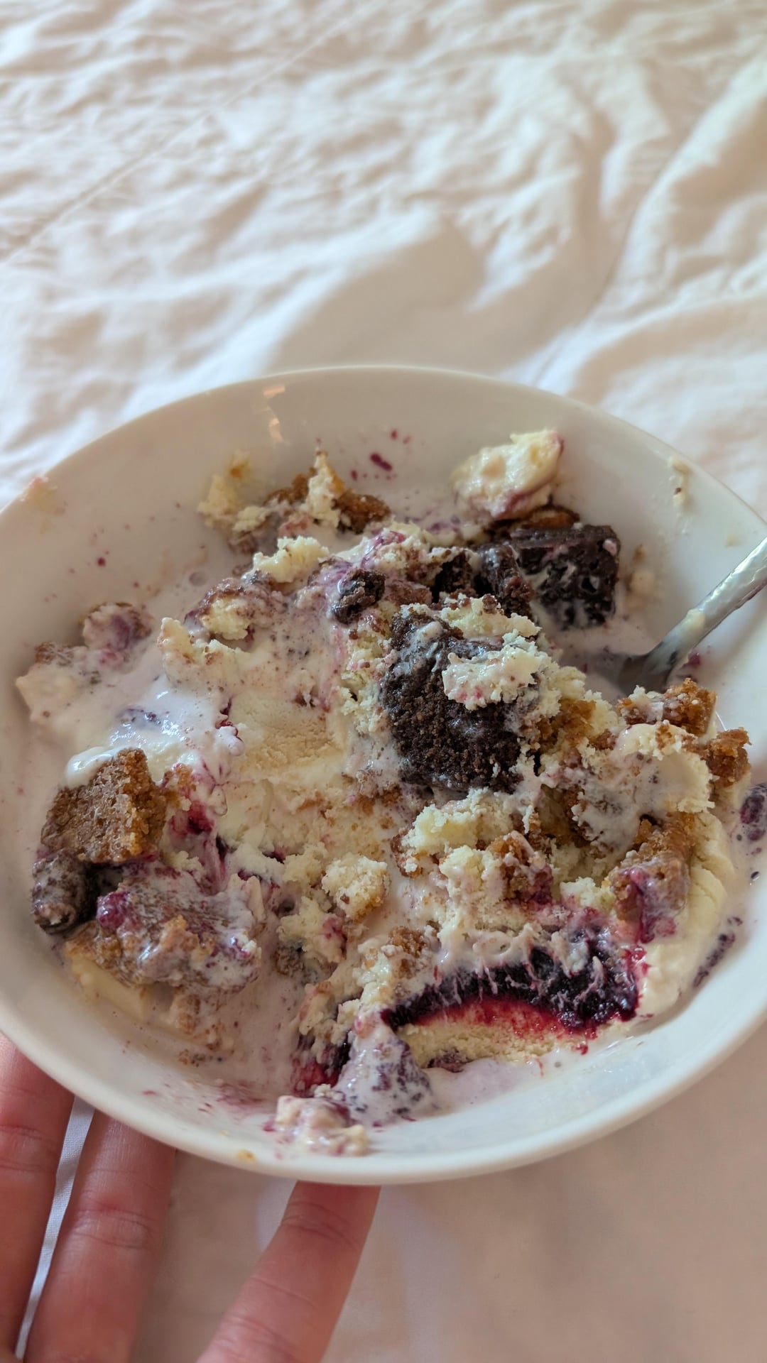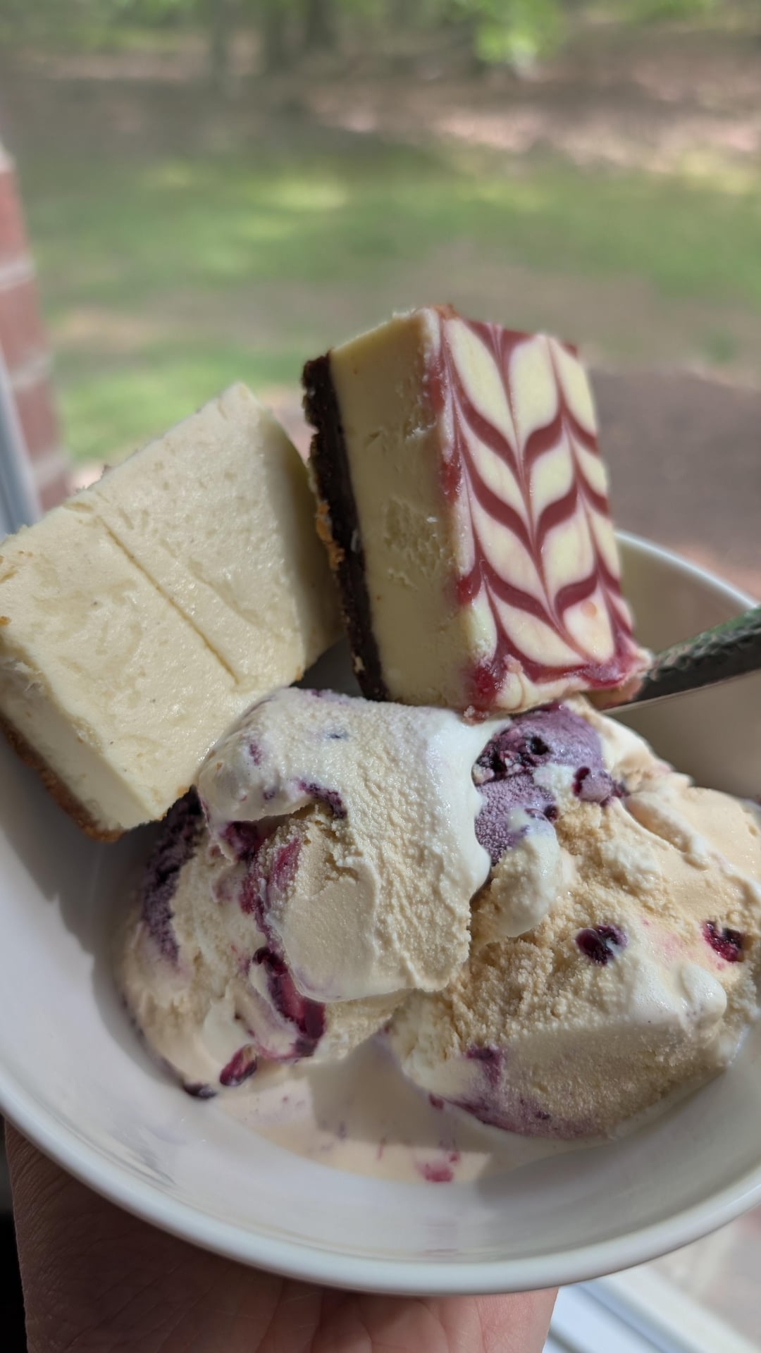 I do this also! I like the cheesecake to be frozen first. Then I chop it up and add it to my bowl. I have a piece in the freezer right now that I’m going to pair with B&J’s Strawberry Cheesecake.