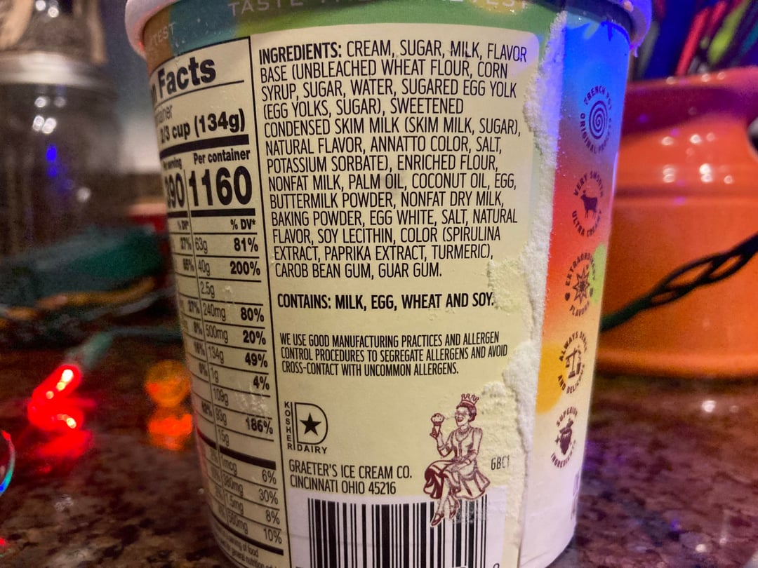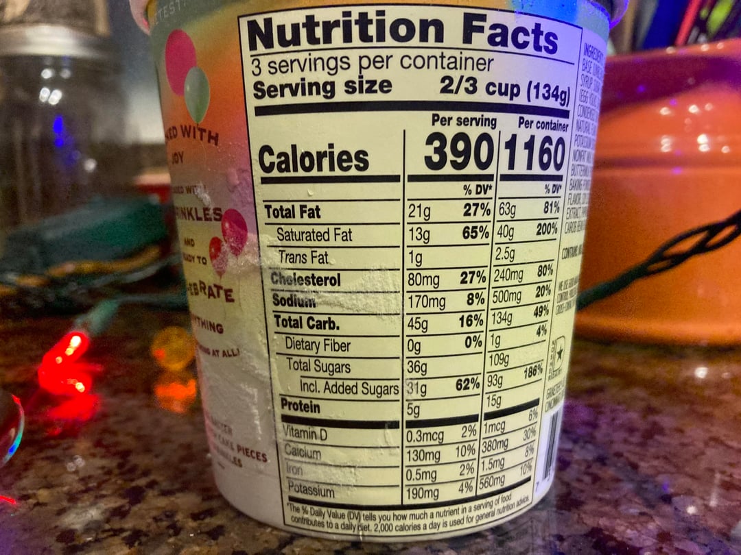 The Facts: 402g | 18% Butterfat | 1160 Calories (390 per 2/3 cup)